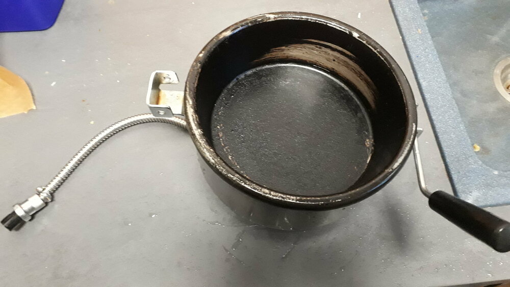 Also ich habe nochmal ne ladung popcorn gemacht, kessel mit fett aufgeheizt, zucker rein und ca 40 Sekunden später das Mais. Das mais beginnt nach 1,5 Minuten an zu poppen, dann gehts ratz fatz, nach 30 Sekunden ist es fertig. Popcorn sieht gut aus, leicht goldbraun, geschmacktest enttäuscht, schmeckt verkohlt... Ich habe echt langsam das Gefühl dass das thermostat nicht mehr funktioniert. Habe mal bilder vom kesselinneren gemacht, was haltet ihr davon? Die teflonbeschichtung hat auch schon bessere tage gesehen...