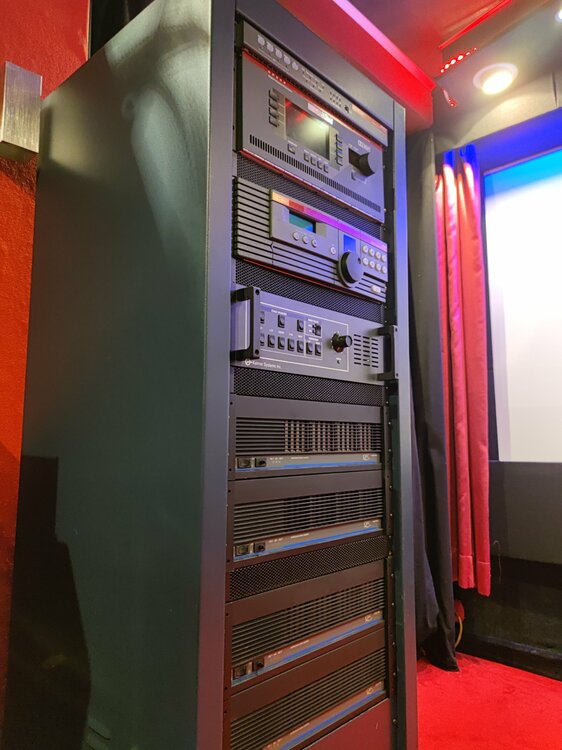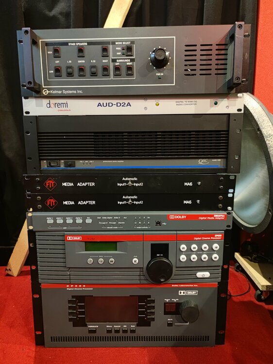 Guten Tag, Kurze Vorgeschichte: Ich habe bereits seit ein paar Jahren ein Heimkino in dem es mein Ziel ist, möglichst alles wie im echten Kino zu machen, technisch wie optisch, da wo es "Sinn" macht. Dies ist mir bisher gut gelungen, ich habe bereits folgendes integriert: -komplette JBL Tonanlage, Saalausstattung -komplette Vorhangzuganlage inklusive Laufschiene und Motor -komplexe Kaschierung inklusive Führungsschienen, Motor, Bedienung und schaltkasten - Bedienelement für Lichtanlagen und Vorhänge -Kinogong -... Das alles in einem kleinen 14 qm Raum.😁 Nun geht es weiter, und dabei brauche ich Hilfe. Das Problem: Bisher hat ein AVR (Marantz) sich um den Ton gekümmert, das tut er auch sehr gut. nun habe ich einige Geräte aus einem Kino erhalten, Endstufen, Prozessoren usw. (Nicht alles im Bild sichtbar Genaugenommen handelt es sich um die Dolby cp500 und cp650 , DMA8 plus und noch ein paar weitere Geräte. Mein Plan ist nun die Geräte zu integrieren, eine umschaltbox mit der ich zwischen AVR und Kinoanlage wechseln kann um "es richtig krachen zu lassen" Doch ich habe keine Ahnung wie ich das Anschließen muss. Kann der Dolby Prozessor die digitalen Signale selber auf einzelne Kanäle dekorieren oder MUSS ich vom AVR analog zum Dolby Prozessor? Was braucht man zusätzlich? Ich habe etwas Angst einfach herumzuspielen und dabei etwas kaputt zu machen, weil ich etwas tue was die Geräte nicht mögen. Welche Möglichkeiten habe ich? Danke schonmal!