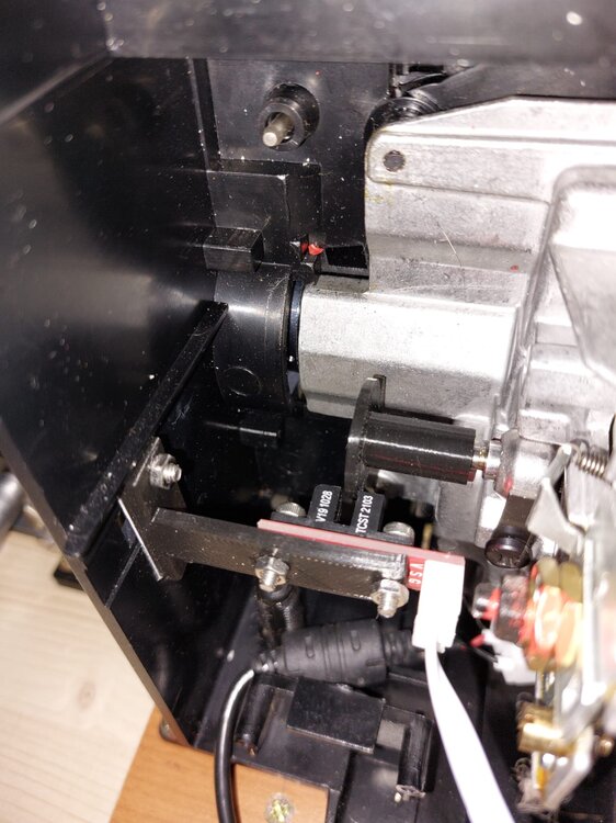 Frame Sensor fehlt eigentlich nur noch ein Sensor, der immer dann anspricht, wenn der Film nach dem Bildwechsel wieder zum Stillstand gekommen ist. Da habe ich wieder auf Technik aus dem 3D Druckerbereich zurückgegriffen und nutze Lichtschranken die als optische Endschalter verwendet werden. Lichtschranke Für die Montage (die ja sehr vom Projektor abhängt) habe ich mir mit Fusion 360 die entsprechenden Teile konstruiert und auf meinem 3D Drucker ausgedruckt. Mit etwas Übung klappt das echt gut und man findet wohl in jedem Projektor eine Stelle wo man das montieren kann. Diese Methode hat den Vorteil, dass man durch einfaches Drehen der Sensorscheibe, die den Lichtstrahl unterbricht, den richtigen Zeitpunkt perfekt justieren kann. Die Auswertung des Signals übernimmt der PICO und sendet den Abspeicherbefehl an den Raspberry Pi der dann im gewünschen Format (RAW ist leider noch nicht dabei) abspeichert.