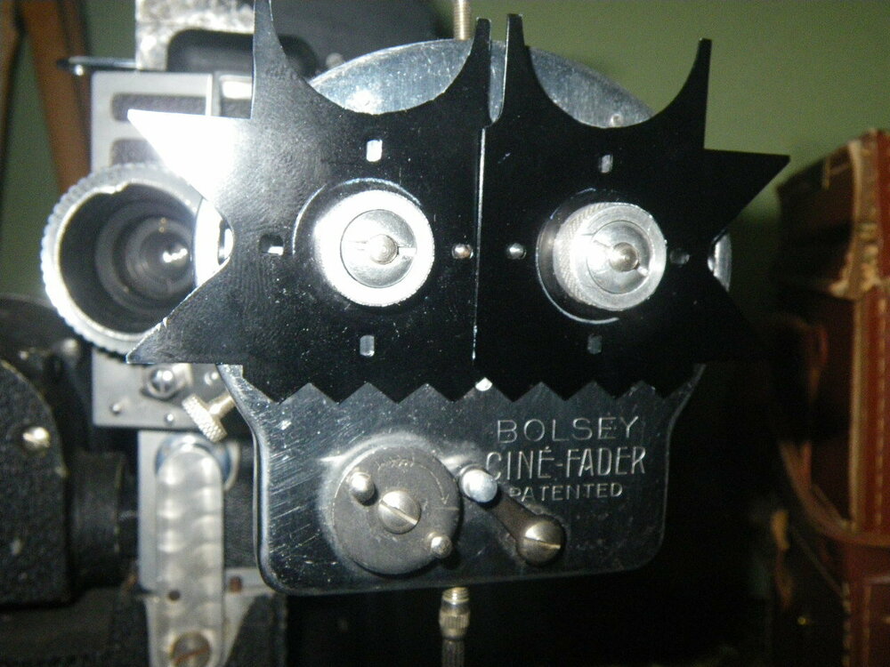Mit den alten Kisten filme ich mit dem Bolsey. Die Blenden sind drehbar und somit hat man diverse Blendenformen. Ein Federwerk lässt dann die Blenden auf und zu fahren. Mit einem Doppelauslöser kann man dann Formüberlendungen machen . Für die Cine Kodak Special hab ich einen Vertikal Überblendmechanismus , bei dem der Antrieb über eine Welle an der Kamera angetrieben wird.