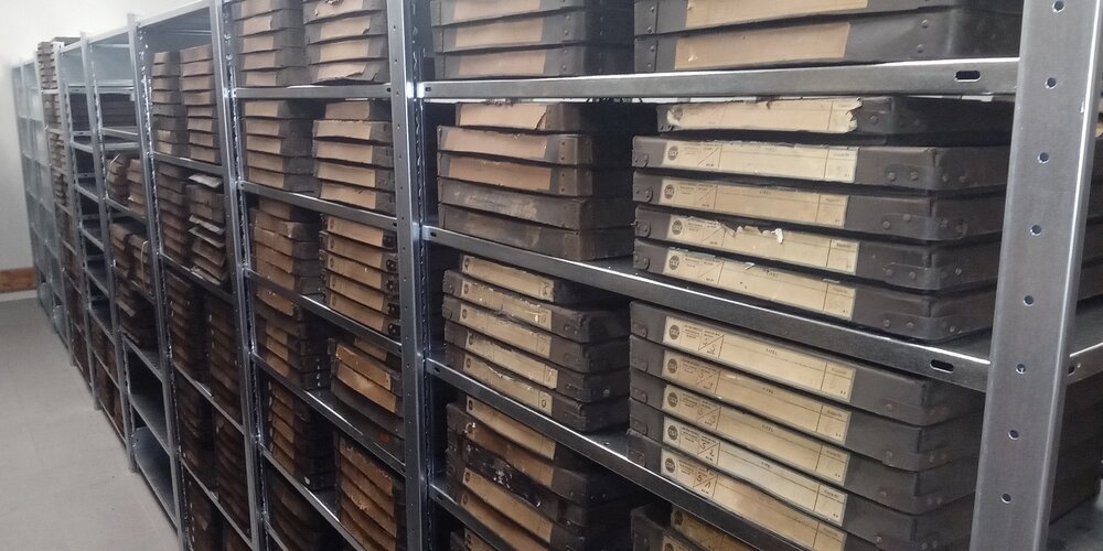 Nach dem Brand im August 2022 in unserem Filmlager "Treppenstraße" haben wir jetzt neue Räume im ehemaligen "Zentral"-Theater gefunden, die zur Zeit mit den geretteten Filmkopie bestückt werden.