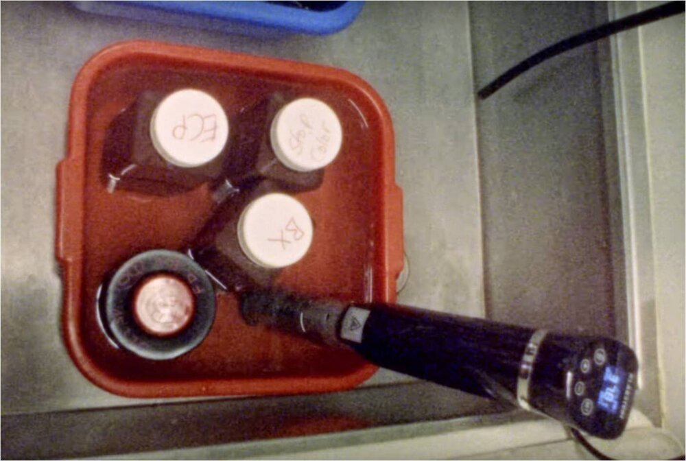Das ganze Zeug gibt es bei Suvatlar in privat gebräuchlichen Mengen zu kaufen. Wenn man selbst ansetzen möchte, muss man leider erstmal etwas in Vorleistung treten. Dafür halten die Chemikalien in Rohform ewig und man kann sich als Gelegenheitsentwickler immer so viel ansetzen, wie man gerade braucht. Ich habe mir einen kleinen Magnetrührer angeschafft, mit dem ich alles in destilliertes Wasser einrühre (eine Maske habe ich seit Corona nicht mehr auf gehabt). Die Temperatur halte ich beim Entwicklungsprozess im Wasserbad mit Sous-Vide-Garer. Gängige Prozesse für Farbfotos (C-41, E-6) gibt es fertig zu kaufen, mit Anleitung. So habe ich auch angefangen. Wenn du mit Negativ selbst entwickeln willst, musst du wohl oder übel selber ansetzen. Wenn du sauber arbeitest und schon Erfahrung mit Schwarzweiß hast, sehr ich mit Farbe auch kein Problem. Aber wie gesagt: Ich habe halt keine Angst vor Chemikalien. Aber Respekt ist immer angebracht. Über meinen eher schnoddrigen (aber keineswegs respektlosen) Umgang mit Fotochemie können dich sicher @filmaund @Friedemann Wachsmuth unterrichten. Die waren bei meinem Workshop in Dresden dabei. Anbei ein grandioses Bild von meinen Chemikalienflaschen im Wasserbad (aus @Friedemann Wachsmuths Dresden-Film) -
