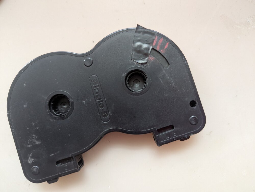 Über die Schulferien konnte ich mir eine Prusa Mini-Drucker ausleihen und kann jetzt also noch ein paar TZage drucken, wie es mir gefällt. Ich habe testweise die Single 8-Klassette ausgedruckt und mit Testfilm durch meine Single 8-Klameras laufen lassen (P1, Z2, P2). Die Laufergebnisse haben mich eher enttäuscht. Am besten funktioniert die Kasselle mit dem kleinen P2-Plastikbomber. Das ist die einzige Kamera, die die Empfindlichkeit vom 100ASA erkennt, da die dieser Kamera die Empfindlichkeit mit 4 Druckknöpfen gemessen wird. Die anderen beiden alten Kameras aus den 60er haben den Schieberegler, der die Empfindlichkeit in der Aussparung der Kasserre misst. Leider ist diese Aussparung bei der gedruckten Kassette nicht tief genug, so dass der Hebel am Anfang hängen bleibt und die Empfindlichkeit bei der Minimaleinstellung (ISO 12?) hängen bleibt. Wen ich die Aussparung mit dem Schraubenzieher etwas auskratze und glatt mache, läuft es besser, nur dass auch dann die ISO 100 nicht korrekt erkannt werden (Überbelichtung, eher ISO 25). Es müsste also etwa 0,5mm tiefer sein. Aber ich bin ja in der glücklichen Position, einige RT200 Originalkassetten zu besitzen, für die ich mir schon vor Jahren mein eigenes System zur Verkleinerung der Aussparung entwickelt habe. Die Striche stehen für 100, 50, 25. Unter dem Klebeband befindet sich ein Kügelchen aus zusammen geknüllter Alufolie. Primitiv aber effektiv. bin denkbar unzufrieden. Der Film läuft nicht so sauber durch, wie ich es von kommerziellen Kassetten gewohnt bin. -