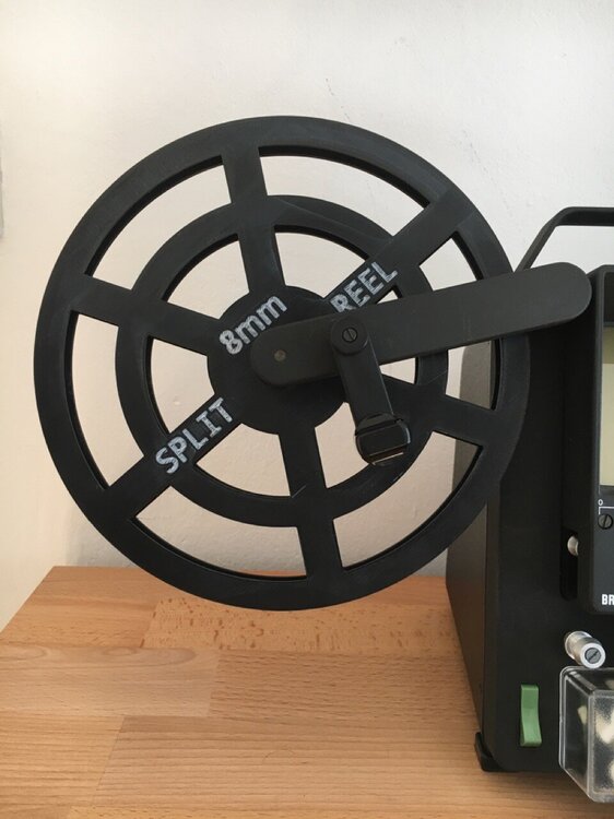Da ich bei Wittner ein paar 60m Super8 Rollen ergattern konnte, brauchte ich ein Split Reel um den Film sicher auf den Kern der Kassette zu spulen. Ich habe mir eines zum Ausdrucken entworfen und teile es mit Euch auf thingiverse: https://www.thingiverse.com/thing:6724058