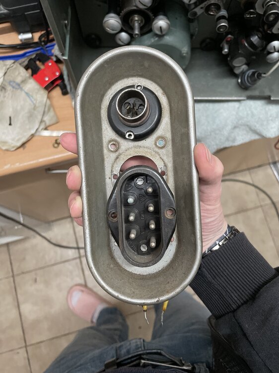 Hallo meine lieben Altkinotechnikfanatiker! Meine TK, welche ich gerade herrichte, hat nur zwei Stecker vorne. Einen großen 7-Pin Stecker und einen Tuchelstecker für Ton. Die späteren TKs haben ja einen 4-Pin, wenn ich mich recht entsinne, einen Schukostecker und einen Tuchelstecker. Aus dem Schaltplan ist zu entnehmen, dass die Spannung für das Lampenhaus auf der 7-Pin Buchse anliegen müsste. Gab es da dann ein extra Kabel was die Spannung für das Lampenhaus abgespaltet hat? Habe so eins noch nie gesehen.