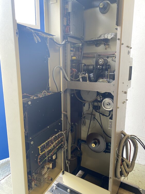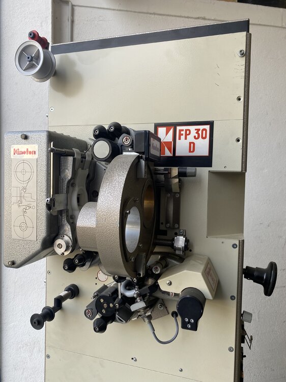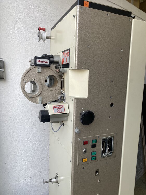 Hallo zusammen! wir trennen uns von zwei FP 30 D (die einzeln erworben werden können) Es ist ein typischer Säulenprojektor allerdings (ab Werk) in der gekürzten Version (für Telleranlage) D.h.: der Projektor hat keinen Abwickelarm für 1.800m. (Haben wir auf Lagerist - aber nicht montiert.) Unten in der Säule ist die 1.800m Spulenfriktion eingebaut. In der Seitentüre sind noch Steckmatrix und Tellersteuerung verbaut. Wir verkaufen den Projektor wie beschrieben ohne Lampenhaus. Fotos können über wetransver (downloadlink) versendet werden. Bitte hierfür unbedingt E-Mail-Adresse angeben. Beste Grüße Kino Jo