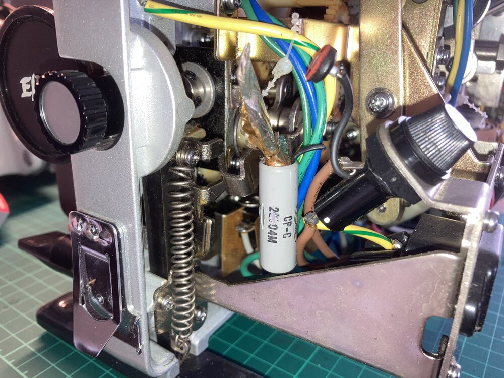 Moin in die Runde, habe neulich einen Projektor „ELMO-SP-Hi-Deluxe“ günstig erstanden. Optisch außen wie innen in einem sehr guten Zustand. Leider hat der Kondensator, der direkt am Netzanschluss sitzt, beim Vorbesitzer schon den Geist aufgegeben. Im Projektor sah es aus, als wenn ein Tischfeuerwerk mit Luftschlangen aus Alu explodiert ist. Der Projektor zeigt zumindest anhand der Kontrollleuchten, dass Spannung anliegt, der Motor dreht aber nicht / läuft nicht an. Mit meinem bisher angelesenen 1/128-Wissen im Elektronikbereich, vermute ich, dass es sich hier möglicherweise um einen Motorkondensator handeln könnte…..🥴? Liege ich da richtig ? Ist es bei diesem Projektormodell so, dass der Motor OHNE diesen Kondensator überhaupt nicht anläuft ? Bei diesem Gerät wird ja beim Einschalten auf die erste Stufe nur der Lüfter geschaltet und erst bei zweiter Stufe zusätzlich die Blendenwellenscheibe über das Reibrad. Müsste aufgrund der geringeren Leistung in der ersten Schaltstufe der Motor nicht auch ohne Kondensator laufen, oder liege ich da mit meiner Einschätzung falsch ? Bei meinen anderen Modellen aus der Reihe „ELMO-SP-Deluxe“ (nicht Hi-Deluxe) sieht es unterschiedlich aus: Offenbar hat es im Laufe der Produktionszeit in der Modellreihe „ELMO-SP-Deluxe“ technische Veränderungen gegeben, oder es sind unterschiedliche Motoren verbaut worden: S/N #613… - MIT Kondensator Bild des Kondensators im SP-Deluxe, S/N #/613…: S/N #616… - OHNE Kondensator (scheinbar, ich habe jedenfalls keinen ausmachen können…, oder er liegt gut versteckt) Hier ein Bild des defekten Kondensators im „ELMO SP-Hi-Deluxe“: ….Foto…. Leider sind die technischen Angaben darauf nicht mehr eindeutig erkennbar. —-> Hat jemand Informationen, welche technischen Daten der Kondensator haben muss und ggf. eine Bezugsquellenempfehlung ? Gruß Frank