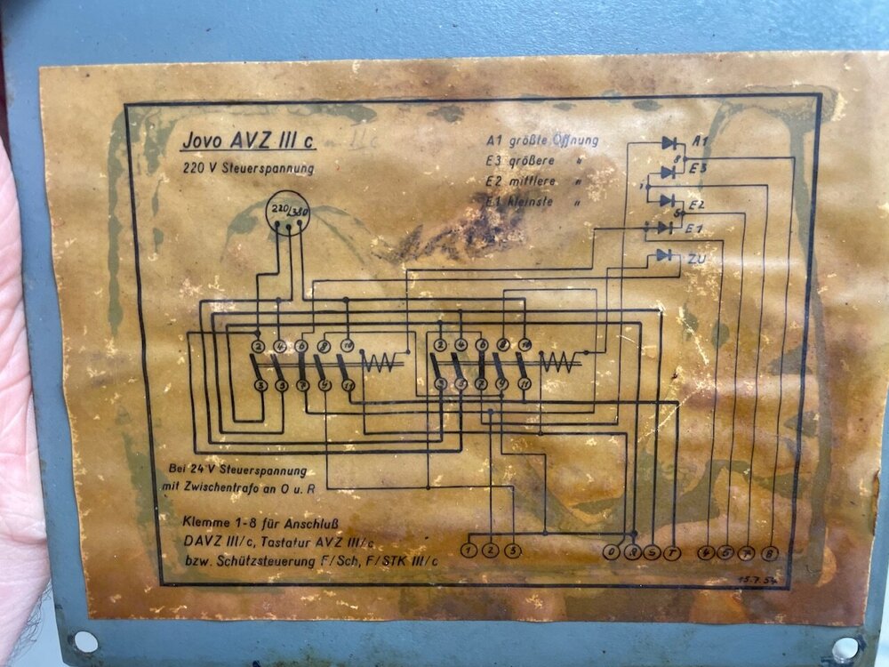 Hallo, habe eine Frage zur Verkabelung meiner Jovo Vorhangzugmaschine. Habe den Schaltplan mal angehängt. Aktuell ist Drehstom auf O/R/S/T angeschlossen und zwei Drucktaster auf den Ausgängen 1/2/3, wobei über 1 die Steuerspannung kommt, welche von R abgezweigt wird. Ich kann mit den beiden Drucktastern auch in beide Richtungen fahren, jedoch ausschließlich zwischen den Nocken/Mikroschaltern für „Zu“ und „E1“ (kleinste Öffnung). Sobald die kleinste Öffnung erreicht ist und der Mikroschalter durch die Nocke auslöst, bleibt die Maschine stehen. Soll sie ja auch 🙂 Aber, wie komme ich jetzt zur nächsten Position? Durch einen erneuten Druck auf den Taster aktuell jedenfalls nicht. Und ist es möglich die verschiedenen Format mit einem Knopfdruck direkt anzufahren? Wie müsste ich dann verkabeln? Einen Drucktaster zwischen 1 für die Steuerspannung und von da entsprechend der gewünschten Position auf die Ausgänge 4/5/7/8? Kann den Schaltplan nicht richtig deuten, und wäre für Hinweise dankbar, bevor ich hier noch was kaputt mache. Vielen Dank, Cornel