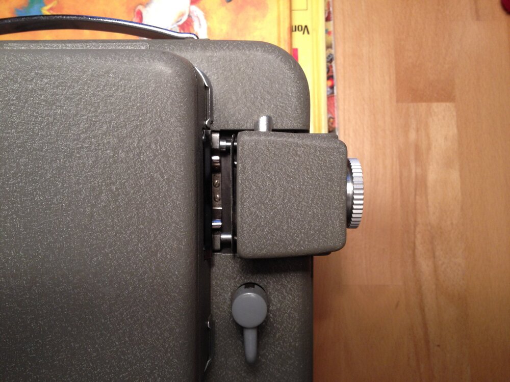 Vorstellung und Frage zu Agfa Movector F8Nico Kiefer antwortete auf Nico Kiefer's Thema in Schmalfilm Und nun die Öffnung des Objektivträgers. Er wird mit gleichzeitigem Tastendruck nach vorne geschoben. Wenn man dann dahintergreift, kann man eine Blechzunge drücken und ihn mit einem Griff ganz einfach komplett herausziehen und dabei entnehmen.