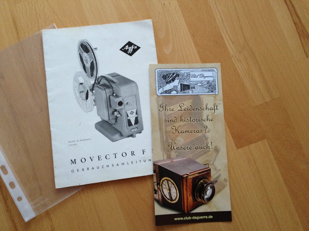 Vorstellung und Frage zu Agfa Movector F8Nico Kiefer antwortete auf Nico Kiefer's Thema in Schmalfilm Und nun kam noch ein weiterer Projektor hier an Man beachte das Zubehör: - das originale Ölkännchen im AGFA Papp-Schuber - ein Tütchen mit mehreren Antriebsriemen (die nie gebraucht werden, da sie nicht kaputt gehen - die originale AGFA Spule, die lt Anleitung serienmäßig mitgeliefert wurde (warum nur eine 60m Spule?) - mehrere Tütchen mit unterschiedlichen Linsen für das Objektiv.