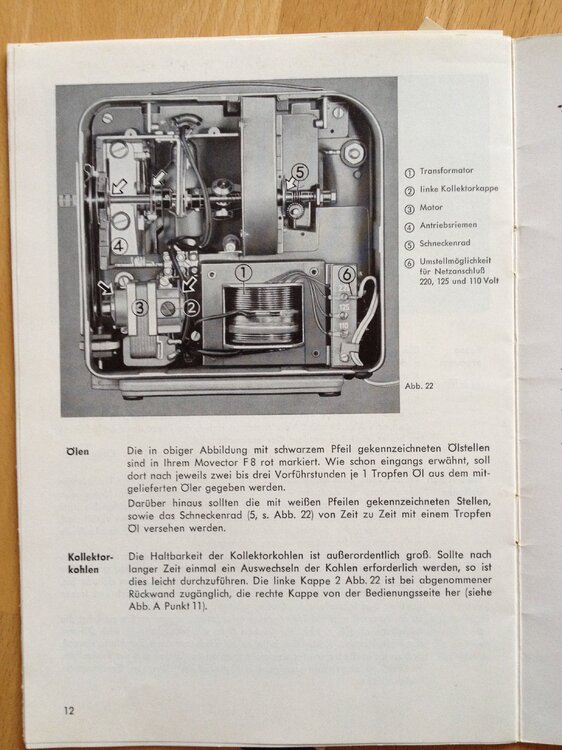 Vorstellung und Frage zu Agfa Movector F8Nico Kiefer antwortete auf Nico Kiefer's Thema in Schmalfilm Ok, wichtig ist erst einmal, das nichts falsch gemacht wurde. Dann bin ich gespannt, was die Anleitung zu dem Thema zu sagen hat, denn diese Stellen haben weder Dochte noch Filze noch Schmieranlagen. Und zu dem E8, der sich in diesem Punkt kaum vom F8 unterscheidet, schreibt AGFA: "Die erstklassige optische und technische Ausrüstung stellen den Movector E8 in die Reihe der Hochleistungs-Amateurgeräte."