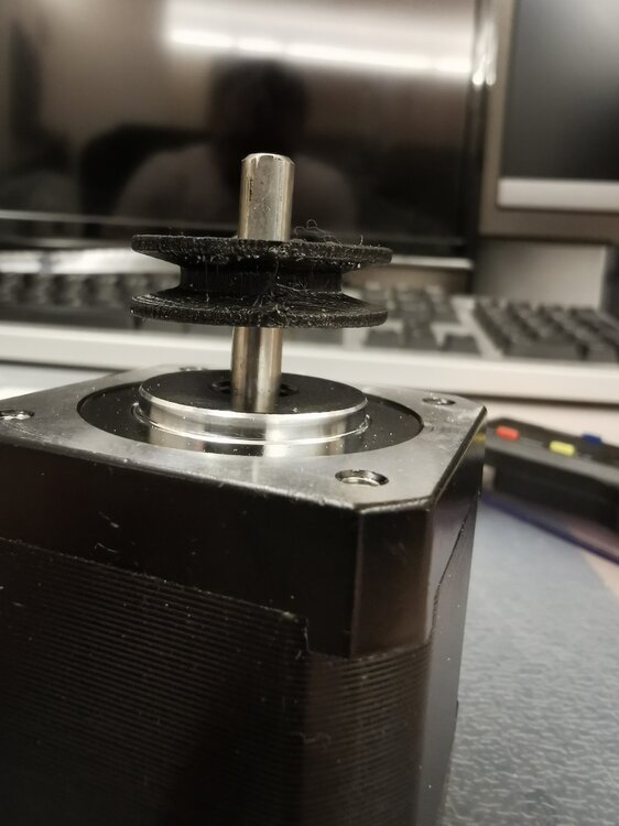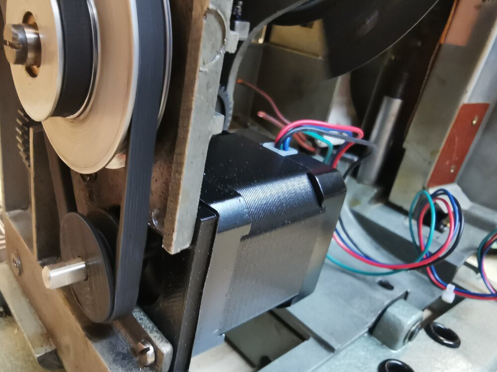 Gestern den Antrieb fertig bekommen. Ein Steppermotor ersetzt den original Motor. Den Schrittmotor habe ich direkt am Gehäuse des Projektors angeschraubt. Löcher ins Gehäuse gebohrt, eine 4mm dicke Abstandsplatte aus dem 3d Drucker zwischen Gehäuse und Motor, damit die Riemenscheibe an der richtigen Stelle sitzt und Riemenscheibe passend neu gedruckt. So weit so gut. Funktioniert. Fehlt noch der Auslöser. Hierfür werde ich eine passende Halterung für den Mikroschalter entwerfen und dann drucken. Von den drei Flügelblenden werden 2 entfernt und eine so zugeschnitten, dass diese bei jeder Umdrehung den Schalter tastet und somit die Kamera auslöst. Dann muss nur noch der Motor von der Geschwindigkeit richtig eingestellt werden, damit die Kamera genug Zeit hat um zu belichten und zu speichern. Mal schauen ob ich die nächsten Tage dazu komme....