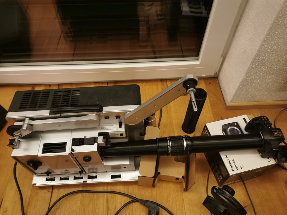 20. Möchte hier meine Erfahrungen über den Bau und die Praxis von meinem Framescanner teilen. Da ich von meinem Großvater ca 30 20min Filme im Super8 Format geerbt habe und ich diese aufgrund der hohen Kosten nicht digitalisieren lassen wollte musste eine DIY Lösung her. Trotzdem sollte die Qualität stimmen. Nach langer Recherche und einem Versuch mit einem Scanner von pearl mit sehr bescheidener Qualität, entschloss ich mich einen Scanner selbst zu bauen. Gebaut habe ich den Scanner bereita im Herbst / Winter 2022 . Das ganze Gerät ist auf einem Noris record L 100 aufgebaut. Diesen habe ich für 10 Euro defekt in der bucht gekauft. Motor und alles überflüssige raus. Antrieb durch einen Steppermotor mit Treiber ersetzt. Leuchtmittel gegen ein LED Leuchtmittel ersetzt. Dieses ist dimmbar. Bei der Flügelblende habe ich zwei Flügel entfernt. Einen zugeschnitten und als Impulsgeber zweckentfremdet. Die Blende aktiviert bei jedem Filmbild einen Microschalter der die angeschlossene Spiegellose Kamera auslöst. Die Panasonic g6 löst in fast 5k auf. Die Optik ist aus einem El nikkor 50mm aufgebaut. Dieses ist mittels 3d gedruckter Adapter an den Projektor angeschlossen und bildet so Format füllend ab. Der Film läuft vorab durch eine Trockenreinigung (Vorlage von "die Filmretter") - hier wird Staub entfernt und der Film antistatisch gemacht. Die Teile habe ich alle mit dem 3d Drucker gedruckt. Das ganze System hat mit Holz für die Unterkonstruktion und allem anderen ca 320 Euro gekostet. 3d Druckkosten sind nicht einberechnet da der Drucker und filament eh vorhanden waren. Die Einzelbilder werden als jpg Sequenz in davinci resolve importiert. Da gecroppt und farbkorrigiert und dann als 4k uhd oder 1080p video ausgegeben. Qualität ist gut bis sehr gut und meiner Meinung nach beim Profi kaum besser. Nur der Kontrastumfang ist beim Profi evtl noch größer. Bin aber hier am testen ob es einen merklichen Mehrwert hat RAW Dateien zu nutzen. Ich bin auf jeden Fall sehr zufrieden. Scanner läuft seit gut 2 Jahren ohne Probleme und hat inzwischen ca 70 Filme digitalisiert. Beantworte gerne technische Fragen und poste auch noch Detailfotos. Beste Grüße Nils