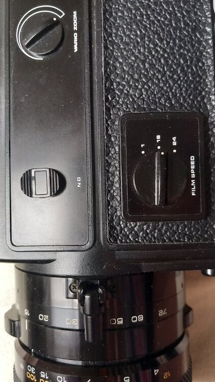 Zurück zu Bolex: hier sieht man den Schalter für eingebauten Graufilter, in Zeiten von E100 sehr nützlich. Das Motorzoom kann stufenlos in der Geschwindigkeit verstellt werden. Wenn man den Zoomhebel rausklappt, ist der Motor abgekoppelt und das Zoom lässt sich butterweich von Hand einstellen, so mag ich das.