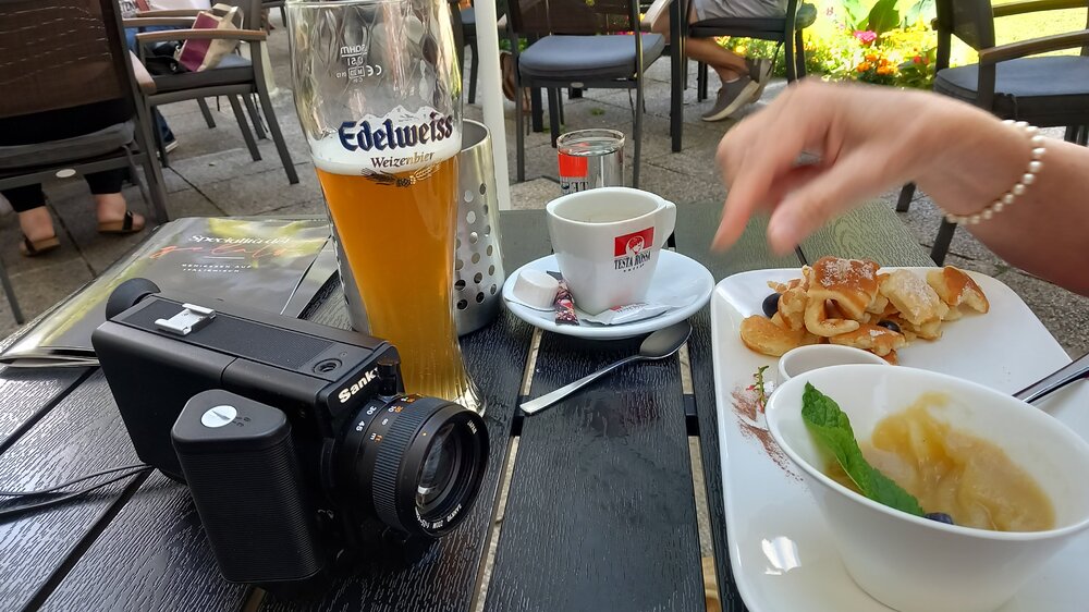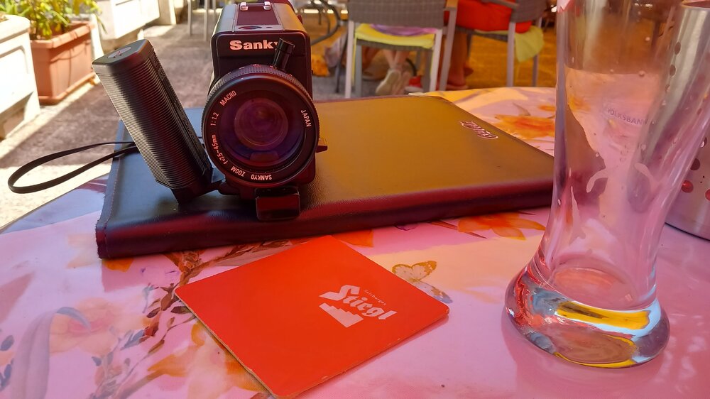 Also, im Urlaub bei Hitze eine Nizo 561 durch die Stadt schleppen...die ist mir echt zu schwer. Und die Sankyo war auch schon geladen...wird wohl ein Film mit kulinarischer Schlagseite😋.