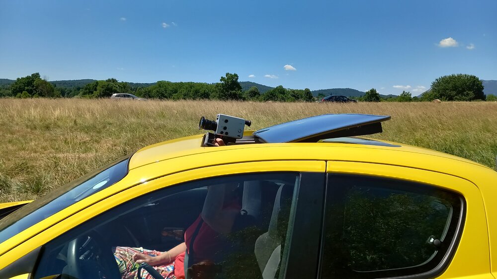 Zuerst machte ich heute einige Aufnahmen mit der Eumig 128XL, oft mit Selbstauslöser und PMA Vorsatz. Ohne Probleme. Nach ca 4m hab ich den Film dann in die Nizo156 XL mit UWL, die Kamera wiegt weniger und das Weitwinkel ist stärker. Damit machte ich dann zwei Szenen aus dem fahrenden Auto. Als ich dann am Urlaubsort noch einige Aufnahmen am Strand machen wollte, stellte sich heraus dass das Filmzählerk bei ca. 2m stehen bleibt. Also wieder Transportprobleme mit der 156 XL. Hab den Film jetzt in die Sankyo getan. Übrigens: der Wankel schnurrte 400 km wie ein Kätzchen, wenn man aber will wird er zur Raubkatze. Perfekt, ist ja auch ein Japaner☺️