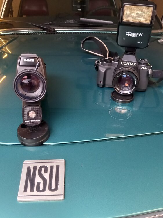 Mit dieser musealen Technik war ich Nachmittags für ein paar Aufnahmen unterwegs. Der Ro 80 läuft schön und eregt überall Aufsehen. Man kann kaum wo parken ohne angesprochen zu werden☺️. Die Contax lerne ich gerade kennen, sie funktioniert und macht Freude. Die Bauer schnurrt fleissig. Irgendwann dachte ich, der Film müsste eigentlich durch sein...Zum Glück hatte ich den Film markiert. Die Bauer hat keinen Zentimeter transportiert, obwohl der Filmtransportzeiger dauernd rudert. So eine nutzlose Anzeige braucht keiner. Wieder mal Lehrgeld gezahlt. Schade! Jetzt will ich die C900 auch nicht mehr. Auch recht, steck ich lieber Geld in Zeiss-Objektive...Zum Glück hab ich ja noch etliche Filmkameras die funktionieren. Wenn die letzte davon den Geist aufgibt, ist Schluss. Kein unboxing mehr.