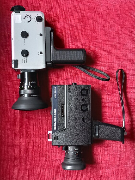 Irgendwie komme ich letztendlich immer zum gleichen Ergebnis: die besten Kameras sind doch die, die ich längst habe. Die kompakt aussehende Bolex auf dem Bild wiegt betriebsbereit nur 100gr weniger als die Nizo 156. Dafür hat die Nizo 8fach Zoom, das auch nach 45 Jahren noch seidenweich geht und Schnittbildentfernungsmesser, um nur die wichtigsten Vorteile zu nennen.