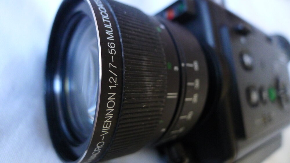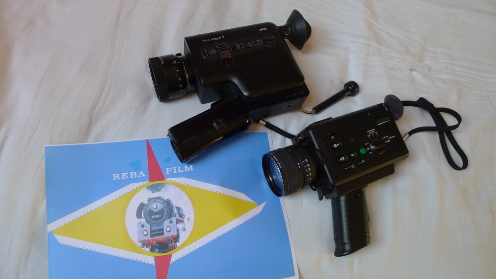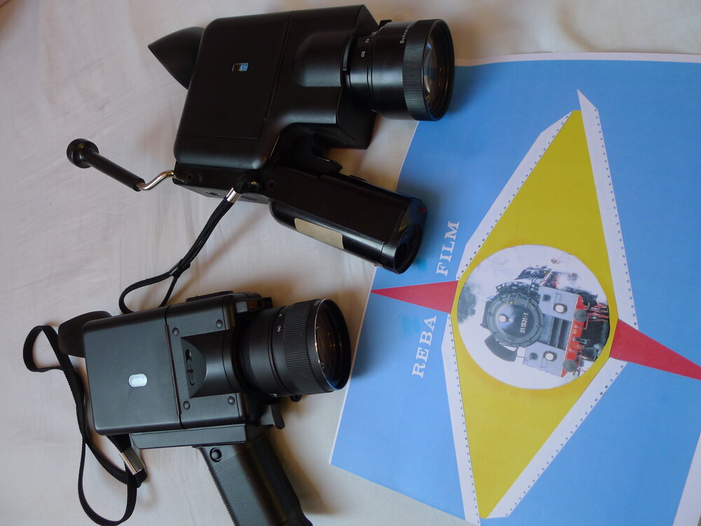 Jetzt bietet sich ein Vergleich an: Nizo Integral7 und Eumig 128 XL. Beide kamen 79 / 80 auf den Markt. Beide mit XL und lichtstarkem 1.2er Zoom. Die Nizo ist eine Tonkamera, läuft sehr leise und liegt mit Schulterstütze und ergonomischem Griff sehr gut in der Hand. Das Schneider Zoom ist ausgezeichnet und ich konnte mit der Kamera einige hervorragende Aufnahmen machen. Ärgerlich ist der Blendenantrieb, der nur zögerlich die richtige Position findet. Der Tonmotor war nicht allzu Haltbar und machte leider schon sehr bald Ärger. Wegen der guten Optik und Ergonomie erwäge ich die Kamera mal mit dem 100D zu benutzen. Im Stummfilmmodus schnurrt sie noch gut und leise mit 18 oder 24 B/s. Die Eumig ist etwas Kopflastig, hat aber 8fach Zoom und bietet den interessanten Aspheric Vorsatz. Sie kann außer 18 auch 9B/s und 36gang was ich interessant finde. Selbstauslöser brauch ich weniger. Vermutlich ist der auch hier vorhandene Blendenmotor schneller, dafür das Laufgeräusch lauter. Aber das kann ich erst testen wenn ich ein funktionierendes Exemplar ergattert habe, ich bin neugierig und bleibe dran.