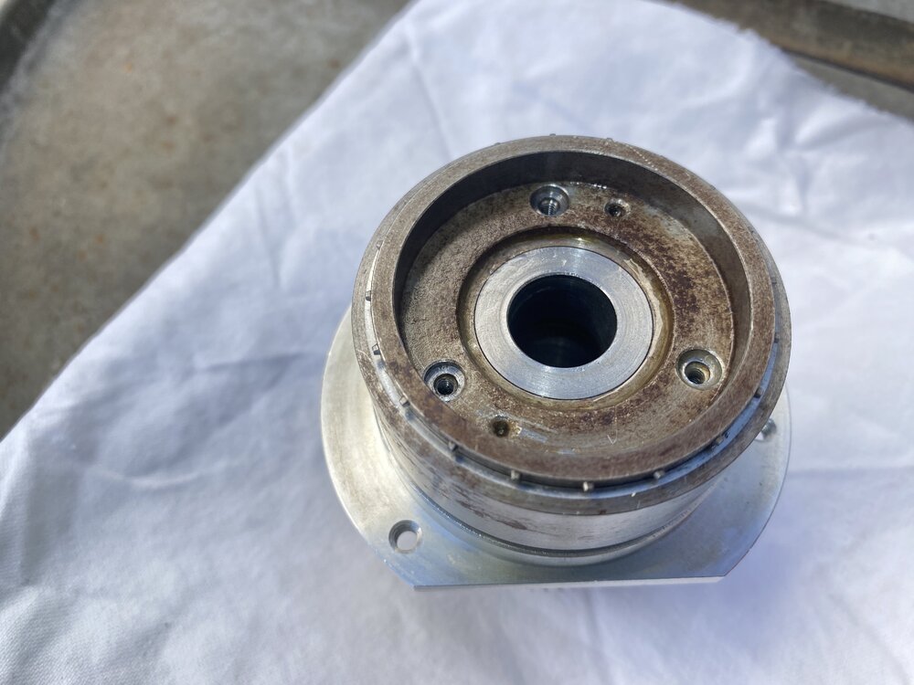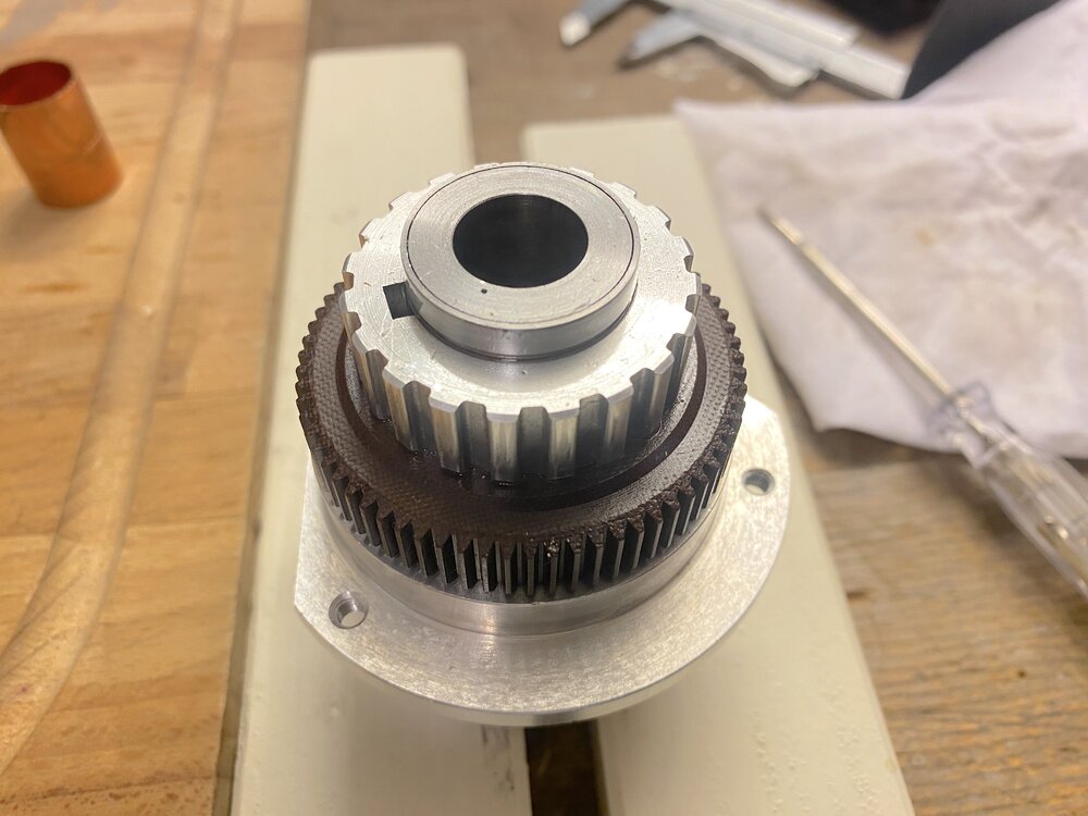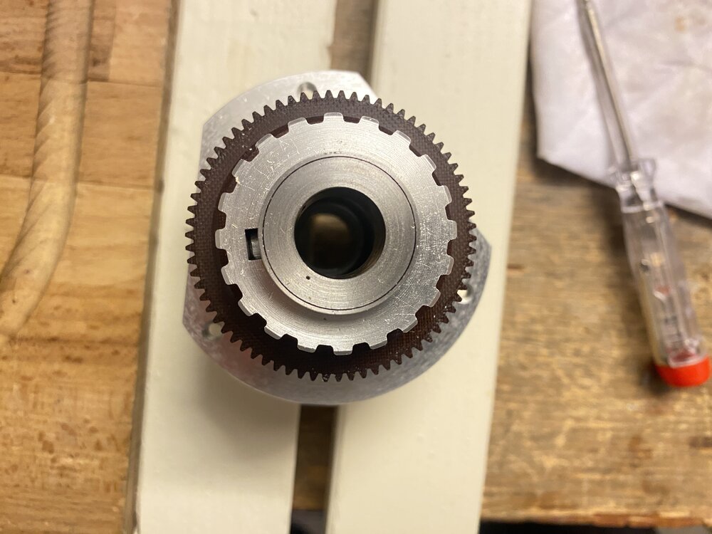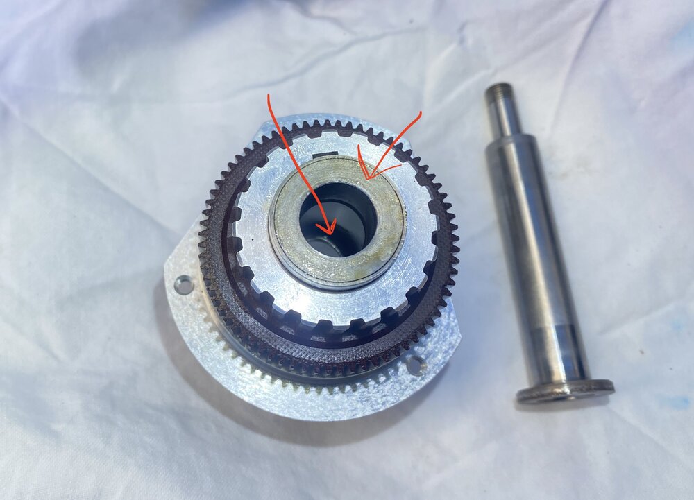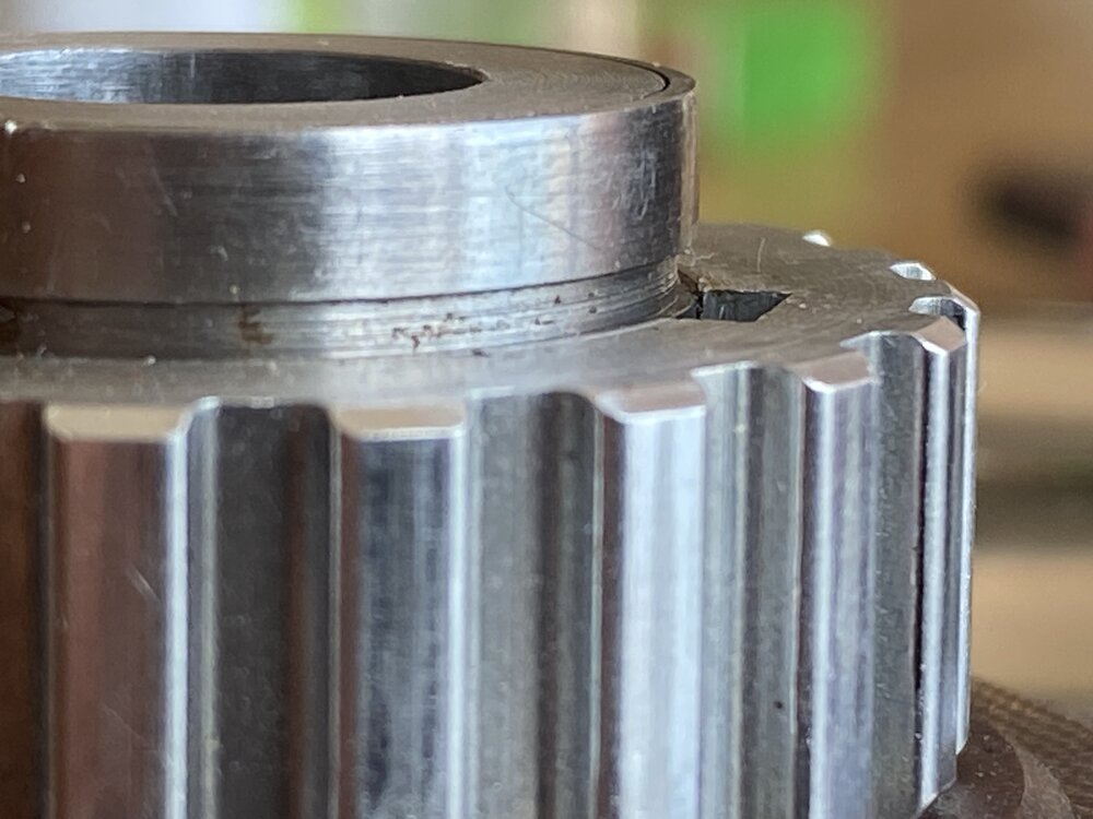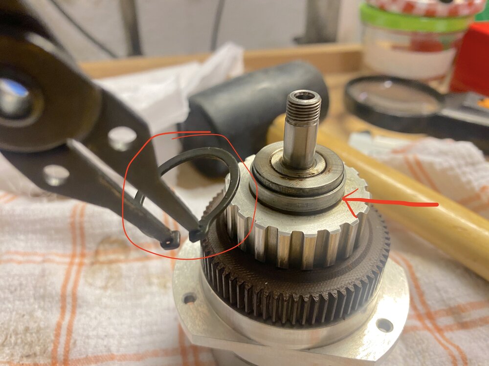 Eigentlich ist nur die letzte Aufnahme mit dem Ring von vor der Entnahme derPolygon -welle. ichwollte nur an den Ring erinern, den ichschon entfernte und die Kerbe, in der er war. Die beiden anderen Bilder sind eine leichte seitliche und eine Draufsicht. Alles ist unverändert