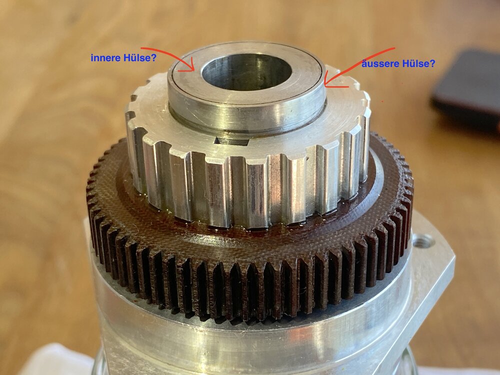 Danke, das hat geholfen, wäre ich nicht drauf gekommen. Nach etwas Mühe ist der Zahnkranz runter oder: beides geht momentan auch nach Erhitzen kaum. Aber erst müsste doch die Hülse raus? Sonst kommt die Riemenscheiben nicht runter, die ja auch noch einen Gewindestift am der seite hat und vorher ja mit einem Sprengring gehalten wurde. Daher gibt es ja auch einhe Wulst bei der Hülse , über die die Riemenscheibe nicht hinaukommen würde. ist die riemenscheibe mit dem Petinex Zahnrad fest verbunden?
