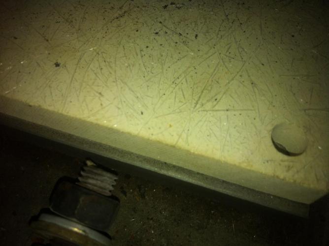 Hallo zusammen! Im Lampenhaus meiner FP-20 steckt ein Xenonblock; ich weiß weder Hersteller (Hasso?) noch Type. Montiert ist das ganze auf einer ebenso mysteriösen, weißen Grundplatte, die meinen Argwohn erweckt. Zunächst scheint diese Platte aus irgendeinem Faser-Preßstoff zu bestehen, die groben Fasern sind gut zu erkennen. Diese Fasern sind zudem noch von einen weißen Träger umgeben, der sich wohl gut schneiden und bearbeiten läßt: An einer Kante sind noch Spuren vom Durchsägen mit einer Kreissäge zu erkennen, ohne irgendwelche Aus- und Abbrüche. Auf den beiden Fotos ist zum einen der Block als ganzes, sowie die Platte in Nahaufnahme zu sehen. Wer weiß, was das fürn Zeuch ist? ... Edith kann nicht erklären, weshalb das eine Foto auf dem Kopf steht, aber bittet dies zu entschuldigen.