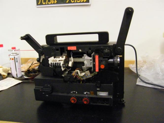 Hallo an Alle. In letzter Zeit kommt es immer wieder vor, dass viele Leute bei mir ihre kaputten Projektoren abliefern. So getreu nach dem Motto: "Soll der sich doch damit rumschlagen, hauptsache ich bin den alten Schrott endlich los". Naja, was solls... Ich dachte mir halt, vielleicht braucht "einer von uns" mal diverse Ersatzteile aus den Geräten, oder so. Ich habe ja schon mal in einem anderen Thread erwähnt, dass ich was von den Sachen aus meinem Hobbykeller wieder ausmustern muß, da ich sonst selber den Überblick verliere. Wenn Ihr was davon gebrauchen könnt, dann schickt mir bitte eine PN. Ich antworte so schnell wie möglich. Jedoch gilt: Wer zuerst kommt, mahlt zuerst! Was weg ist, ist weg! Ich möchte nichts für die kaputten Maschinen haben. Aber das Porto fürs DHL-Paket möchte auf jedenfall erstattet bekommen. Ich stelle hier noch ein paar Bilder und ein paar kurze Infos zu den Geräten ein: Projektor "Revue Lux Sound 602". Baugleich mit diversen Eumig-Geräten. Es gibt keine Projektionslampe mehr und er fängt unheimlich lautstark an zu quietschen, je länger er läuft. Beim letzten Test kam er aber auf die benötigte Geschwindigkeit, um den Film vorführen zu können. Ihr wißt ja bestimmt alle über die problematische Reibrad-Geschichte bescheid, denke ich. Projektor "Bolex SM 8 SPECIAL". ABSOLUTER TOTALSCHADEN! Das Teil muß mal auf den harten Boden gefallen sein. Das Metallgehäuse!!! ist an einer Stelle gebrochen!!! Die Maschine bekommt zwar noch Strom, lässt sich aber nicht zwecks Projektion in Betrieb setzen. Projektor "Eumig S 926 GL Stereo Sound". - Keine Lampe - Alle Regler defekt - Film lässt sich nicht einfädeln - Spulendorn fehlt - Motor läuft - Hintere Gehäuseabdeckung ist lose, es fehlen ein paar Schrauben Projektor "Eumig S 926 GL Stereo Sound" (ein anderer). Ich konnte den Ton nicht prüfen, weil sämtliche Regler abgebrochen sind. Ansonsten scheint er zu laufen, wie er soll. Zu dieser Maschine gibt es noch eine Original-Betriebsanleitung. LG von Bauer-Fan PS: Ich werde in naher (oder auch in ferner) Zukunft weitere defekte Geräte hier einstellen. Es kommt darauf an, wie ich die Zeit dazu kriege. Schaut ab und an mal hier vorbei, wenn ihr was als Ersatzteilträger sucht.