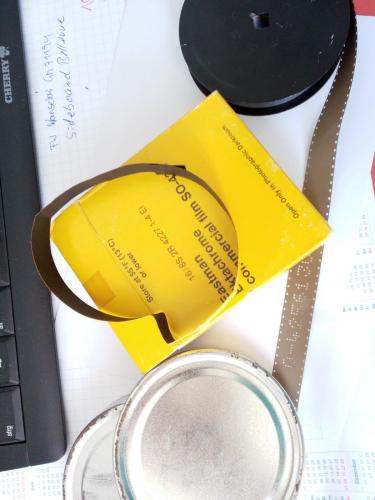 das ist was besonderes... ein Kopierfilm für (ich glaube) Kodak VNF Material. Na ja wie dem auch sei, er ist was besonderes. ich nur das er 6 ASA bei Tageslicht hat. Nein man Kann ihn im E6 Prozesse entwickeln. Und das mit erstaunlich guten Ergebnissen. Obwohl er schon rund 40 Jahre abgelaufen ist. Ich plane ihn heute anfangen zu verbrauchen. Als erste ich hab keine Kamera sie 30 meter Spulen fasst. Also umrollen auf 10 m spulen... Dann er hat die Fläche von 4 super 8 Kasseten. wenn man 1 l E6 Chemie ansetzt und die 30 m Rolle entwickelt ist der Liter verbraucht. So, jetzt aber zum entwickeln: Belichten wie 4-5 ASA Tageslicht) So hat es mir Friedemann gesagt: Alle Bäder bei 32°C anwenden, möglichst auch die Zwischenwässerungen, sonst Gefahr von Runzelkorn. Wärmer als 34° darf er aber auch nicht werden! 1: Remjet Removal Bath, 10 Minuten, keine Agitation 2: Ausgiebig wäsern, 10 Minuten (Remjet abwaschen und Chemie aus der Schicht kriegen) 3: Erstentwickler Dokumol 1+5, 6'00 Minuten 4: 2'00 Min wässern 5: 8'00 Farbentwickler 6: 2'00 Wässern 7: 4'00 Bleichfix 8: 5'00 fliessend wässern 9: 1'00 E6 Stabi Bad 10: Remjet-Reste entfernen. Achtung: Nicht die Schicht berühren! Sie ist extrem weich und lässt sich einfach vom Träger wischen. Vielen Dank an Friedemann. Er hat mir den Film zur Verfügung gestellt So jetzt noch Bilder: