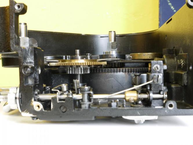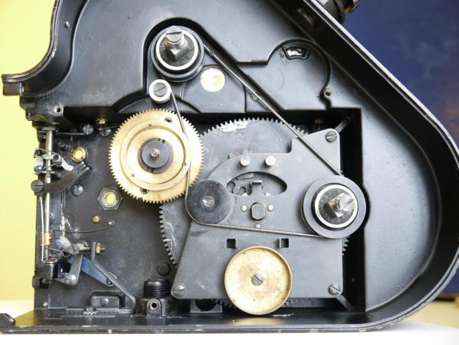 Sie entsteht 1945-46, zur selben Zeit wie die 35er Caméflex von Eclair. Sie hat eines der besten Gehäuse aller Schmalfilmkameras. Wie ihr Vorbild, der Ciné-Kodak Special, steht die Pathé-WEBO M großflächig auf dem Stativ. Die optische Achse ist so tief wie nur möglich gelegt, wodurch man unglaublich dicht ans Objekt herankommen kann. Ein einfaches Objektiv und Zwischenringe genügen für fantastische Makrobilder. Für lange Brennweiten ist größte Stabilität gegeben. Die Feder zieht 980 Bilder durch. Der wie bei der Paillard-Bolex-H stehende Fliehkraftregler sorgt für einen weiten Bereich von Bildfrequenzen, nämlich von Tempo 8 bis 80. Filmrückwicklung ist möglich im Umfang eines Federaufzugs, also der genannten Anzahl Bilder. Zählwerke in Fuß, Metern und Bildern ermöglichen exaktes Arbeiten. Die WEBO M hat als einzige Schmalfilmkamera ohne Spiegelreflexsucher einen Verschluß in Schmetterlingausführung, d. h. mit zwei Flügeln bei halber Umdrehungsgeschwindigkeit. Als verstellbarer Umlaufverschluß läuft er unmittelbar vor der Bildfensterplatte, näher am Film geht es kaum. In der Geschlossenstellung wird ein kleines Blattfederchen mit einem Zahnrad zur Berührung gebracht, was ein schnarrendes Geräusch macht. Es soll einen daran mahnen, daß der Film unbelichtet bleibt. Diese Rätsche funktioniert auch rückwärts. In den Stellungen zu, ¾ geschlossen, halb geschlossen, ¼ geschlossen und offen rastet der Verstellhebel ein. Saubere Sache Der Filmkanal ist leider nicht auf der Höhe anderer Kameras. Die Filmseitenführung verursacht mir leichte Bauchkrämpfe, wenn ich an die Normen und ans Kopieren denke. Es ist schon eigenartig: In Frankreich setzt man sich immer wieder über wichtige technische Vereinbarungen hinweg. Sogar bei der 35-mm-Kamera Aaton Penelope ist die Filmseitenführung verkehrt gebaut. Die Federwirkung der Seitenbleche ist minimal. Der Reflexsucher der Pathé-WEBO M besteht aus einer Membrane im 45-Grad-Winkel zwischen Objektiv und Film, eine dünne Glasscheibe, und einem Linsen-Mattscheibe-System. Die einseitig entspiegelte Membrane wirft etwa fünf Prozent des von der Optik kommenden Lichts zur Seite. Im Gegensatz zum Prismenblock der Paillard-Bolex-H Reflex gibt es bei dieser Ausspiegelung keinen Fokusversatz, weshalb jedes Objektiv mit C-Fassung verwendet werden kann. Das C-Gewinde darf 3,8 Millimeter lang sein. Der Dreierrevolver der Pathé-WEBO kann auf einfache Weise blockiert und freigesetzt werden. Als ganz kleines Manko ist zu werten, daß man beim Revolverdrehen an die Objektive faßt. Das Filmeinspannen muß geübt werden, doch das ist Ehrensache für Filmer. Selbst die teuersten Berufskameras haben keine Einfädelautomatik. Nach zwei, drei Filmrollen macht man das ganz selbstverständlich. Nachdem man den Deckel aufgesetzt und verriegelt hat, erfährt man ein Gefühl der Sicherheit. Das habe ich bis heute nur bei dieser Kamera erlebt. Jüngere Modelle sind mit einer Einfädeleinrichtung ausgestattet. Für den Service-Techniker ist die Pathé-WEBO eine besondere Herausforderung. Im Schaltwerk gibt es gerne Verschleiß am Auslösebolzen. Eine kleine Rolle statt bloßer Stahlkante diesem gegenüber oder gehärteter Bolzen wäre kein Luxus gewesen. Dafür sind die Reglerlager von außen her zugänglich, ein Detail, das einzigartig ist. Das typische Merkmal der Pathé-WEBO ist ihre billige Machart. Zwischen Zahnrädern und Wellen gibt es zuweilen Luft und wenn der Techniker die Befestigungsschrauben ungleichmäßig festzieht, läuft das entsprechende Zahnrad unrund. Falls also ein solches Gerät im Lauf miaut, dann war die Montage nicht sorgfältig gemacht. Es gibt jedoch einige Punkte im Getriebe, die den Mechaniker vor die Entscheidung stellen: Kamera fertig bauen, weil die Konstruktion ein Bruch ist, oder die Waffen strecken. Da ist zum Beispiel einfach zu wenig Platz für das kombinierte Sperrklinken-Zahnrad des Aufzugs, welches entweder an den Lötaugen des Federhauses kratzt oder am Zählwerkgetriebe schleift. Man kann es auf der Welle positionieren, wie man will, man kann auch die Welle axial einstellen, so weit etwas zu holen ist, die zuoberst befestigte Antriebscheibe der Wickelpeese kommt nie in Flucht mit dem Rest ihres Weges. Zudem stimmen die Profile der Peesenscheiben mit ihrem Querschnitt nicht überein. Mangelhafte Filmaufwicklung, unrunder Lauf, Verschleiß und als Folge teure Reparaturen brandmarken die „M“ als ewiges Sorgenkind. Die Platine mit Lagern fürs Getriebe und der Wickeltrommel wird bloß mit drei Schrauben niedergehalten. Als Monteur kann ich sie mit etwa einem halben Millimeter Spiel nach vorne, oben, hinten und unten beliebig fixieren. Es gibt keine korrekte Position, ich kann nur die beste finden. Einzig die Federbüchse ist seriös im Gehäuse verankert. Irgendwann hat man bei Pathé auf die vielen Beschwerden über mangelhafte Filmaufwicklung reagiert und den Umschlingungswinkel an der treibenden Scheibe vergrößert: Ich schätze diese klassische Amateur-Kamera ins untere Mittelfeld ein. Sie steht besser auf dem Stativ als manche andere, bietet viele Möglichkeiten für Bildbeeinflussung und Tricks und verströmt mit ihren Gehäuserippen einen Charme von Zigarrenkiste. Altväterlich, französisch eigenwillig, viel stabiler als die Beaulieu Reflex, aber unsicher im Innern. Beim Modell BTL, Abkürzung von Behind The Lens, ist ein CdS-Fotowiderstand eingebaut, mit dem Messung des reflektierten Lichts erfolgt, und zwar des Lichts, das einerseits von einem hellen Lackring auf dem Verschluß abfällt und andererseits von der Filmoberfläche und heller Lackierung der objektivseitigen Bildfensterumgebung. Die Flächen sind aufeinander abgestimmt, damit im Lauf wie im Stillstand der gleiche Lichtstrom auf die Meßzelle fällt. Im Sucherrohr ist ein Drehspulinstrument angebracht, dessen Ausschlag mit der Objektivblende geregelt werden kann. Mit Blick durch den Sucher überwacht man den Ausschnitt, die Schärfenei
