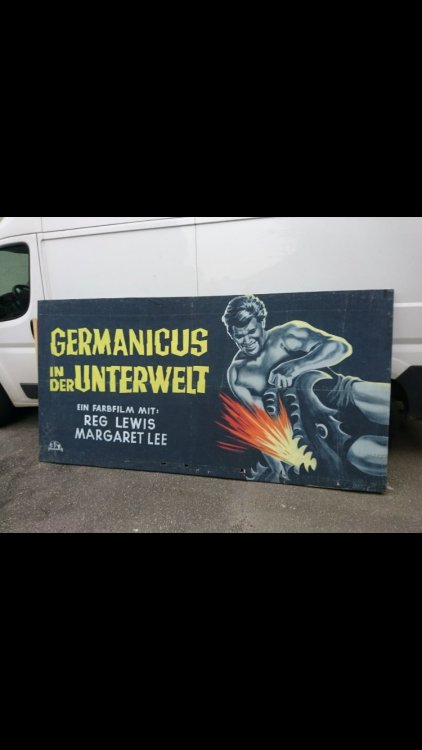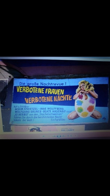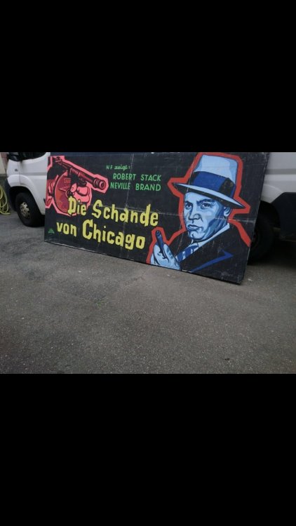 Bei einem Spaziergang durch Köln, habe ich heute durch Zufall in einem Antiquitätenladen diese Filmplakate gefunden. Alle sind auf Leinwand gemalt. Die Herkunft scheint unbekannt, da sie auf Umwegen nach Köln gelangt sind. Dort liegen sie nun zum Verkauf. Nur soviel scheint bekannt zu sein: sie kommen aus Süddeutschland und wurden vor ein/zwei Jahren bei einer Kino-Auflösung im dortigen Keller gefunden. Kennt jemand den genauen Fundort? Unten Links ist bei den früheren Plakaten ein Kürzel, es wird wohl von dem Theater-Maler sein. Vielleicht erkennt es ja jemand.