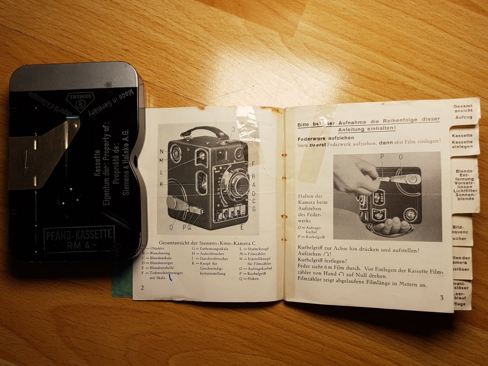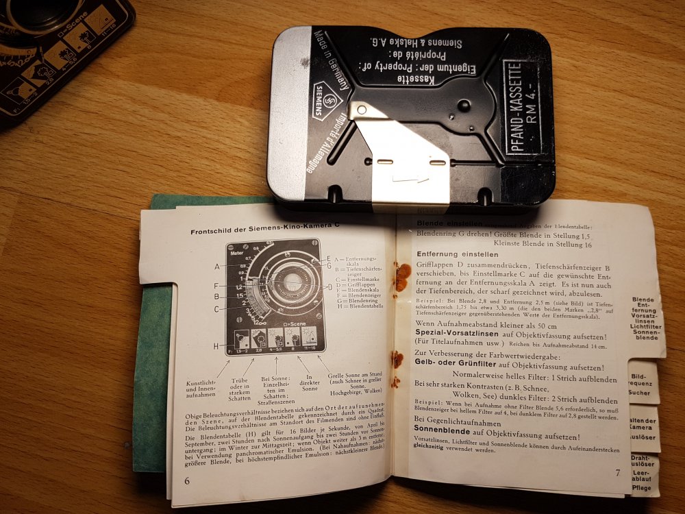 Hallo Freunde der Schmalfilm-Technik. Ich bin neu und wollte gern mal meine alte Kamera vorstellen die ich zwar schon seit Jahren von meinem Opa bekommen habe, aber die ich jetzt erst mal ausprobiert habe. Es ist eine alte Siemens 16mm Kamera C . Ich glaube das zwischen Modell von der ersten C zur CII und sie ist sehr selten. Was auf der Anleitung draufsteht könnte so wie ich es im Internet gelesen habe " Photo Hoffmann " heißen. Keine Ahnung ob es der Hoffmann ist den ich denke im Internet gefunden zu haben. Na gut zu mein Problem. Ich habe sie letztens mit einem B&W Film verwendet. War auch alles problemlos das Filmen aber nach der Entwicklung musste ich feststellen , das die aufnahmen teils doppelt sind sprich hab das Gefühl das man bei manchen aufnahmen die Shutterklappe zusehen ist ganz komisch. Woran könnte das liegen ? Was mir auch noch aufgefallen ist , das die schärfe unterschiedlich ist sprich zur Mitte hin ein kreis der schärfer ist als der Rest. Liegt das am Objektiv ? Ich denke die Präzision war wohl vor 80 Jahren noch nicht so genau :) Oder könnte das auch am Filmmaterial liegen? Ich hoffe ihr könnt mir da weiter helfen. Danke