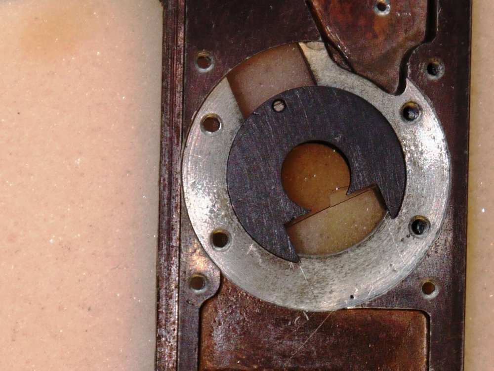 L’Yonne, Fluß. Dieser Fluß führt an der Stelle, wo er sich mit der Seine vereint, bei Montereau-Fault-Yonne, im Mittel 93 Kubikmeter Wasser in der Sekunde, während die Seine 80 Kubikmeter in der Sekunde bringt. Also fließt durch Paris die Yonne. Nachdem das geklärt ist, können wir dahin schauen, wo Marcel Christen, 1903‒1982, sich als Präzisionsmechaniker eingerichtet hatte, nach Vinneuf. Das 1300-Seelen-Dorf liegt etwas abseits der Yonne, deshalb war es im 2. Jahrhundert Vicus Novus genannt worden, Neudorf. Das alte lag direkt an der Icauna. Woher Marcel kam und warum er Kamerabau an einem ganz ländlichen Ort betrieb, konnte ich bislang nicht herausfinden. Auch woher er den Mut nahm, gegen Beaulieu, Ciné GEL, Grimm, Lévêque und Mascre anzutreten, bleibt unbekannt. Sicher gab es nach dem Krieg einen neuen Schmalfilm-Boom, um es amerikanisch zu sagen, es war das El Dorado des Heimkino, nur kamen zur französischen Konkurrenz noch alle anderen hinzu. 1954 wurde von den Etablissements Chapignac, St-Etienne, ein Tiefziehunternehmen, die Armor hergestellt. 1955 kamen die Heurtier heraus, 1959 die elektrische Morex, 1960 die SEM Véronic und Virginie und 1960-61 die erste Crouzet. Doch er hat’s getan, Christen hat 1950 mit der Fabrikation von Filmkameras begonnen. Er soll mit der Zeit bis 25 Angestellte beschäftigt und monatlich 300 bis 350 Kameras ausgeliefert haben, was insgesamt 25'000 Einheiten ausmacht. Ende der Produktion war 1962. Die Werkstatt wurde von Sohn Jean-Louis übernommen. Neun Modelle sind bekannt. 1. Christen 8, 16 B./s, Auslösehebel auf der Seite, D-Gewinde 2. Christen 8, Auslöseknopf an der Front 3. Christen 8 Super, Rückspulung mit Steckkurbel; 1953 4. Christen 8 Super VM, 5. Christen 8 Super B 3, Zweierschlitten; Preis mit Objektiv 12,5-1.9 (1957–2016): € 815,58 6. Christen 8 Super B 3 VM, Zweierschlitten, drei Geschwindigkeiten, 7. Christen 8 Super 4 V, vier Geschwindigkeiten 8. Christen 8 Reflex Intégrale DB-1, ein D-Gewinde, 4 G., Rückspulung mit eingebauter Kurbel 9. Christen 8 Reflex Intégrale DB-2, Zweierrevolver mit D-Gewinden, 4 G., R. m. e. K. Die Nichtreflexmodelle haben eine gewölbte Filmbahn. Alle Modelle waren erhältlich in drei Farbtönen, Kräusellack Sand, grün oder grau. Die technischen Einzelheiten Ich beginne mit dem Optischen. Das Aufnahmegewinde ist leider zu kurz, deshalb kann nicht jedes Objektiv mit D-Fassung verwendet werden. Ich messe eine Länge von 3 Millimetern bis zum Schutzblech. Adapterringe eröffnen einem aber Möglichkeiten. Man muß sich passende Weitwinkel- und Normalbrennweiten beschaffen, zum Beispiel das Kern-Paillard-Switar 13-0.9 hat einen längeren Gewindestutzen. Der Sucher besitzt keine Mattscheibe, man stellt auf Luftbild ein. Das Okular erlaubt Augenkorrektur von plus 2 bis minus 6 Dioptrien. Das Sucherbild mit Fadenkreiz ist recht hell. Die mit ziemlich großem Radius verrundeten Ecken im Sucherbild verdecken einiges an Bild. Die Sucherausspiegelung erfolgt verdreht unter dem Winkel von 23½ Grad! Die Membrane ist verspannt und hat schon Sprünge. Das kommt von der Alterung des Klebemittels, weil die Membrane ungeschickterweise auf beiden Seiten angeklebt wurde. Die Maße der Membrane sind 0.4“ × 0.4“ (10,16 mm im Quadrat). Für die Umlenkung nach hinten ist ein Oberflächenspiegel eingesetzt. Mit einer der wenigen Kameras mit Membran-Reflexsucher in Händen, im Doppel-8-Format sind die Christen die einzigen, steigerte sich mein Interesse noch weiter. Was den Reflexsucher betrifft, haben nur Pentaflex 8, Ercsam Camex R 8 und Beaulieu R 8 mit Spiegelverschluß die Nase gleich weit vorn. Alle diese Konstruktionen sind mit Mattscheiben ausgeführt, denen auch alles Licht zugeführt wird. Eine Membrane hingegen ist fest montiert, es gibt keinerlei Unsicherheit aus Lagerspiel. Das ist ihr großer Vorteil. Das Auflagemaß beträgt 12,32 mm, drei Hundertstel Millimeter mehr als die genormten 12,29. Das ist richtig, denn die Glasmembrane führt einen prismatischen Längsversatz ein, auch wenn sie dünn ist. Unter dem Winkel von 45 Grad und beim Brechungsindex von 1,52 passt die Membranstärke von 0,065 mm zu dem gemessenen Wert (√2 × 1,52 × 0,03 mm). Es fehlt mir somit nur noch ein Gläslein von 10,16 × 10,16 × 0,065 mm. Es darf auch 10 auf 10 auf 0,1 sein. Stärkeres Glas bewirkt wenig mehr Versatz, womit etwas Filmwölbung Rechnung getragen ist. Arnold & Richter hat für die PL-Kameras das Auflagemaß von 51,98 mm +0 –0,01 festgelegt. Das Getriebe ist wie folgt gestaltet. Die Federbüchse besitzt 132 Zähne und kämmt mit einem Ritzel von 10 Zähnen. Auf der Ritzelwelle sitzt ein Zwischenrad mit 100 Zähnen, das mit dem nächsten Ritzel von wieder 10 Zähnen kämmt. Auf dessen Welle befinden sich ein Zwischenrad mit 36 und ein Schraubenrad mit 15 Zähnen. Das eingreifende nächste Schraubenrad hat 40 Zähne. Es ist mit der Greiferwelle und mit einem schmalen Zwischenrad von 36 Zähnen verbunden. Das Reglerschraubenrad hat 16 Zähne. An das erste Schraubenrad ist auch die Verschlußwelle gekoppelt. Im Scheibenverschluß ist eine Öffnung von 171 Grad. Der Greifer setzt +3 ab. Beim Öffnen des Kameradeckels wird er zurückgezogen, was das Filmeinlegen und -herausnehmen leicht macht. Beim Regler mache ich eine unerwartete Entdeckung. Sein Schraubenrad enthält nämlich einen Freilauf, das ist eine Klemme, die in eine Drehrichtung wirkt, in die andere dagegen nicht. Der relativ schnell drehende Regler kann daher beim Anhalten des Mechanismus’ frei auslaufen und wird nicht brüsk stillgesetzt. Es durfte wieder ein Mal eine gute Idee Metall werden. Ausgeführt ist das mit einer Wendelfeder, von der ein Ende in einer Bohrung im Schraubenrad steckt und das andere als Umschlingung der Welle abfällt. Eine solche Schlingfeder gibt es auch um den Kern der Zugfeder, übrigens noch bei mancher Marke. Mit einem Federaufzug kann ich 610 Bilder belichten, 38 Sekunden bei Tempo 16. Dank Aufzug am Fed