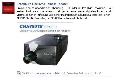 Bis also auch in Karlsruhe nach Verzögerungen die native 4k-Projektion angekommen ist, sei auf den 2k-Markt verwiesen.