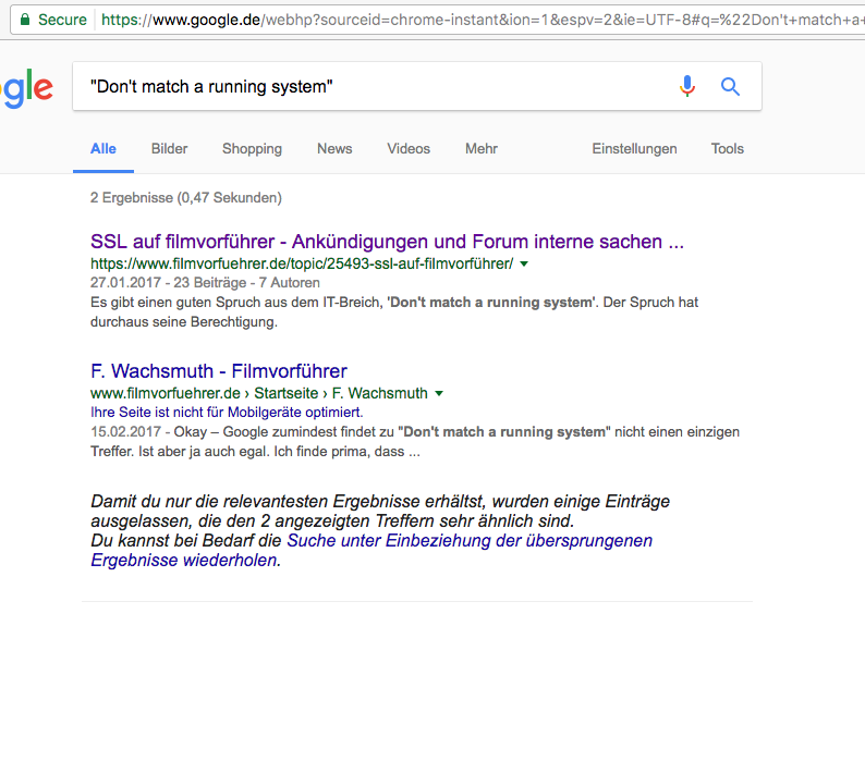 • Hauptgrund ist wirklich Google, aber Google hat auch Recht.
