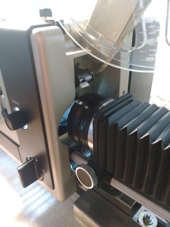 das Objektiv mit abgeklebten Blendenring (ist ja beim Rodagon durchsichtig...)