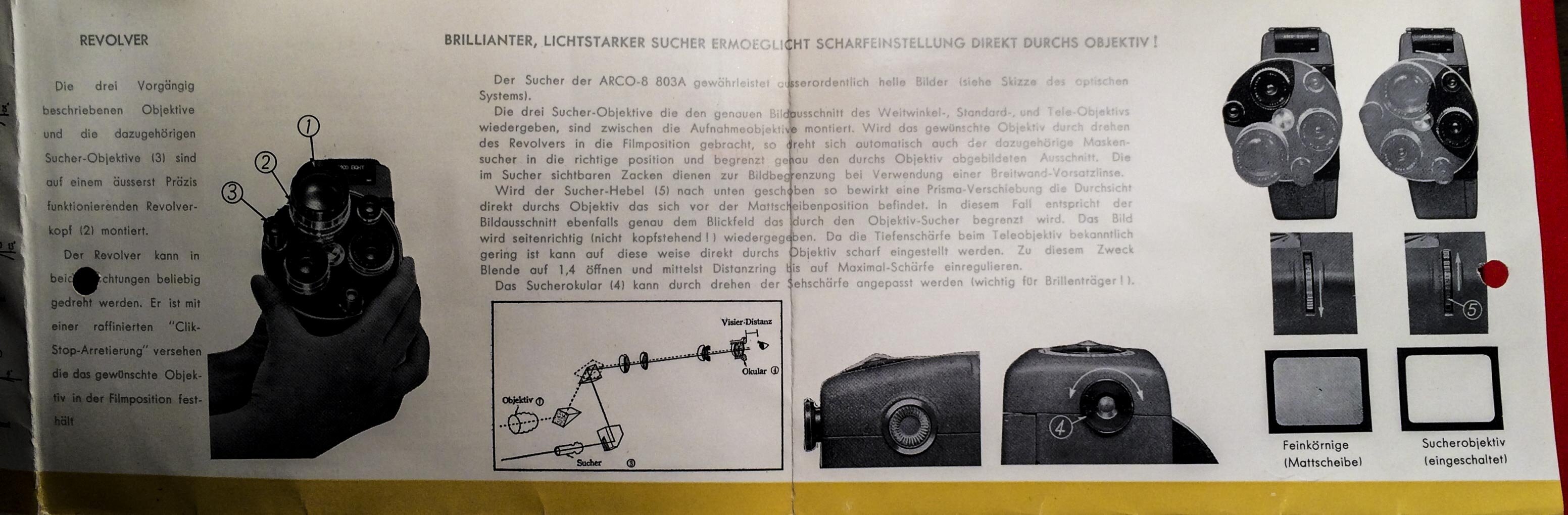 Hier noch zwei Ausschnitte bezüglich des Suchers, aus einem Prospekt der Arco Eight: