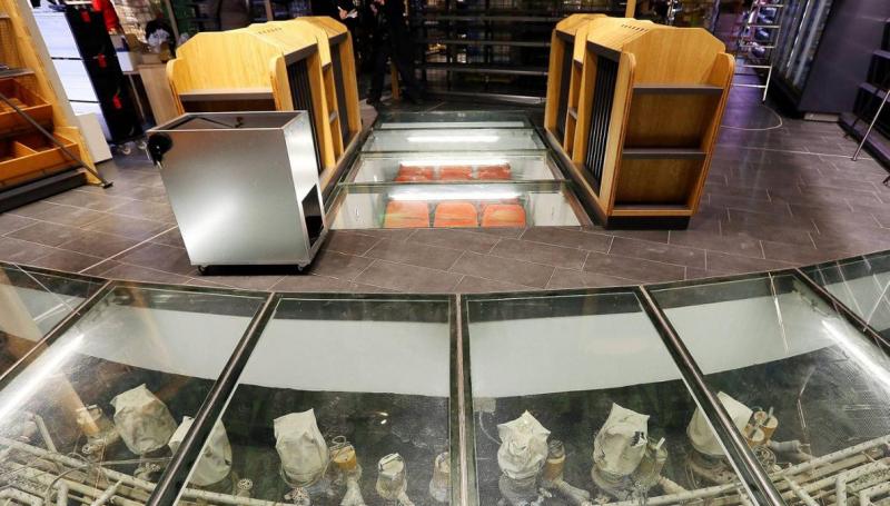 einige Meter davor befindlichen Wolkenstore. der zu diesem Zwecke auf ein spezielles Podest herabgelassen wurde. Im unteren Teil