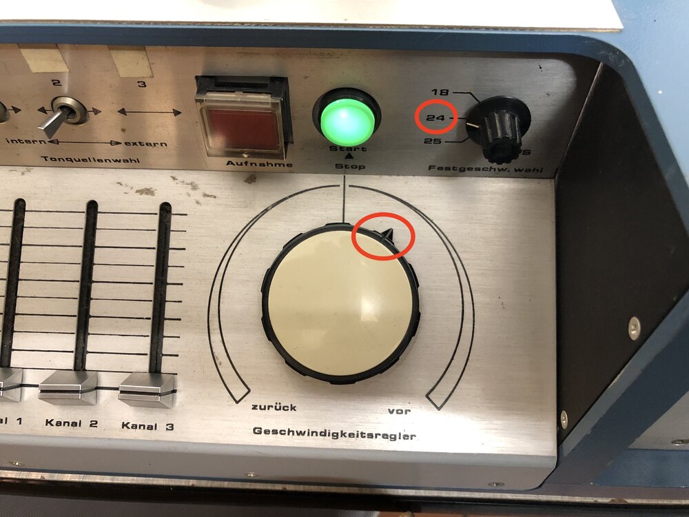 Ich habe kürzlich einen Schneidetisch Willi Schmid Mini-Diplomat II 4-Teller mit Wechsellaufwerk (Super-8 und 16mm) erstanden, ein sehr schönes Gerät, einziger Nachteil: der Geschwindigkeitsregler ist defekt. Dreht man den Regler nach rechts, läuft er schön langsam an, wird dann schneller, aber genau dort, wo er einrastet um mit voreingestellter Festgeschwindigkeit zu laufen (im Bild 24 FPS), bleibt alles komplett stehen. Dreht man dann noch weiter, geht er sofort auf schnellen Vorlauf. Vielleicht kennt hier ja jemand das Problem und hat eine Lösung, ansonsten würden ein Service Manual oder Schaltpläne vielleicht auch helfen. Anbei noch ein Foto zur besseren Identifizierung...