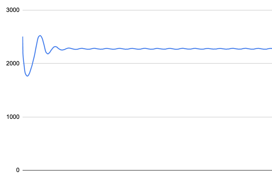Das System vergleicht laufend die Gesamt-Impulsdifferenz von Motorwelle und Quarz und füttert diese Differenz in einen PID-Regler. Dessen Tuning war (wie immer) eine etwas zeitaufwendigere Sache, denn der Projektor soll sanft nachregeln, aber muss auch schnell reagieren, ohne dabei zu schwingen.