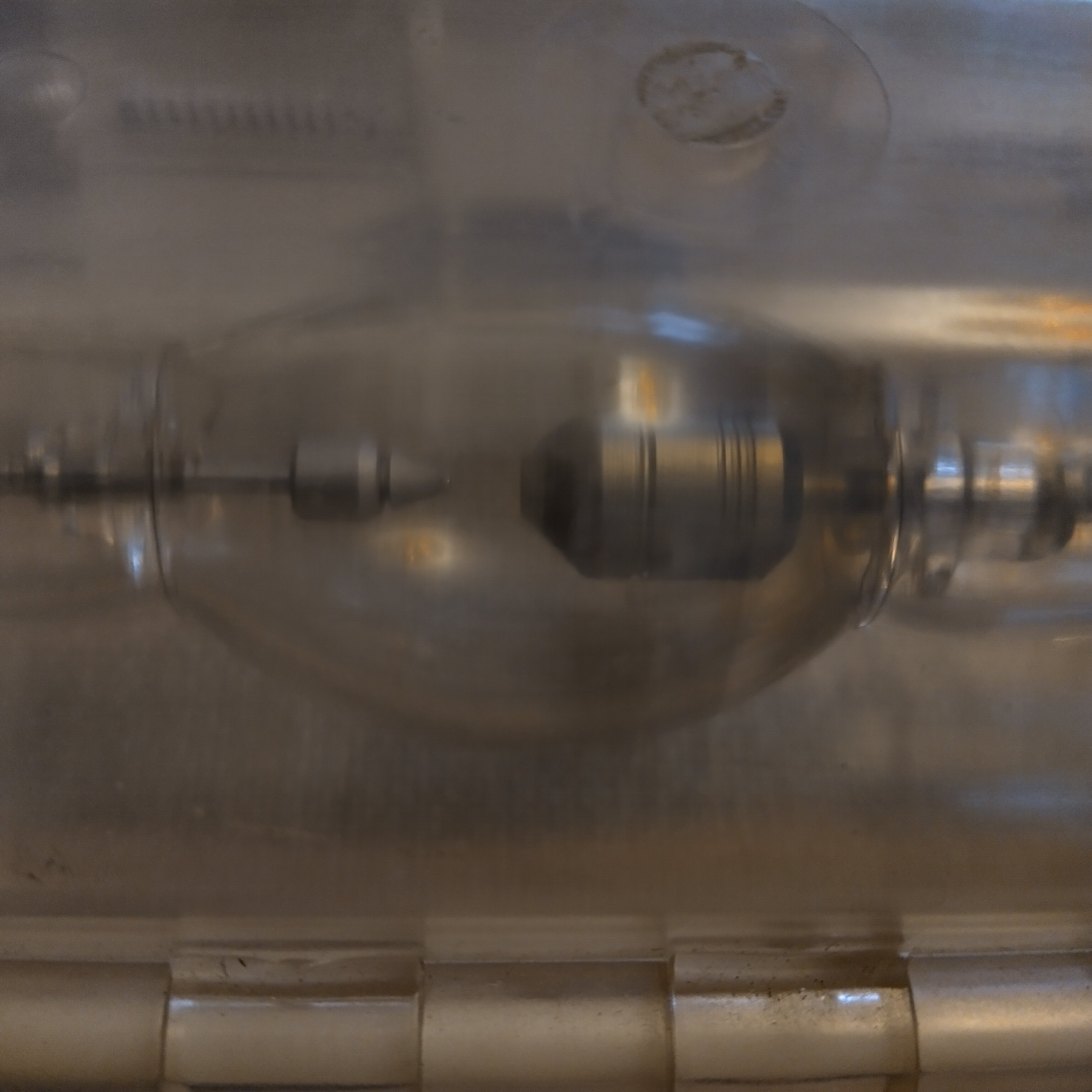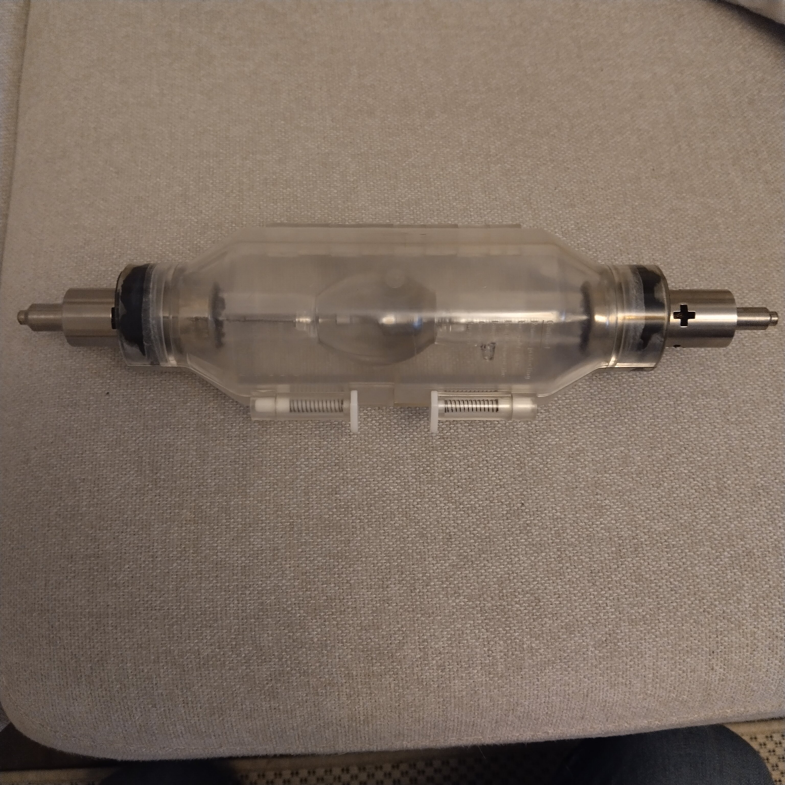 Für meine Vorstellung sieht der noch richtig gut aus. Anode und Kathode sind ohne sichtbare Abnutzungen. Das Quarzglas hat nur einen leichten Schimmer einer Eintrübung was, so habe ich's gerade gelesen, als gerade "eingefahren" anzusehen ist.
