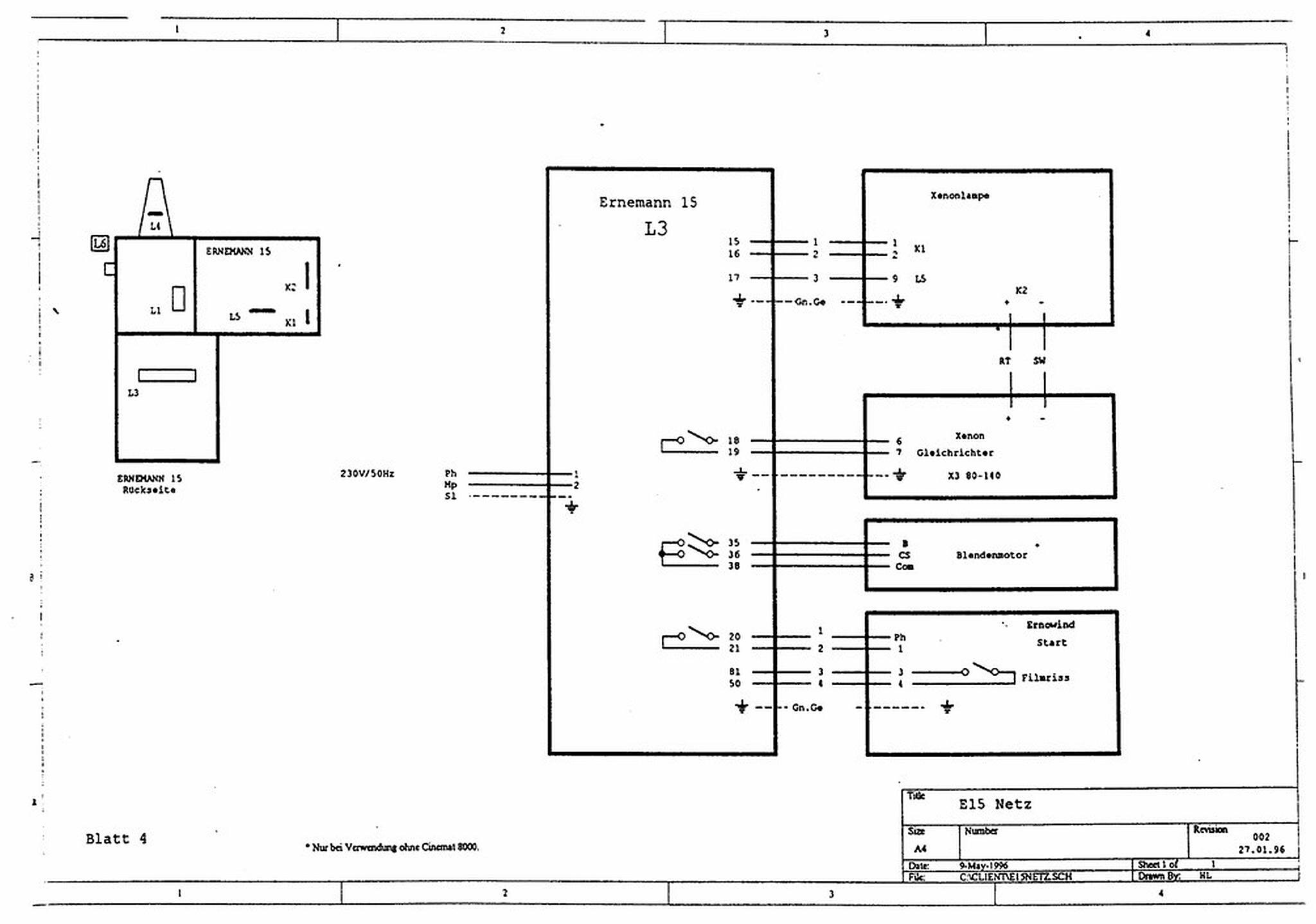 Ernemann 15. Anschluss Steuerkabel von Xenonlampengleichrichter im Projektor.