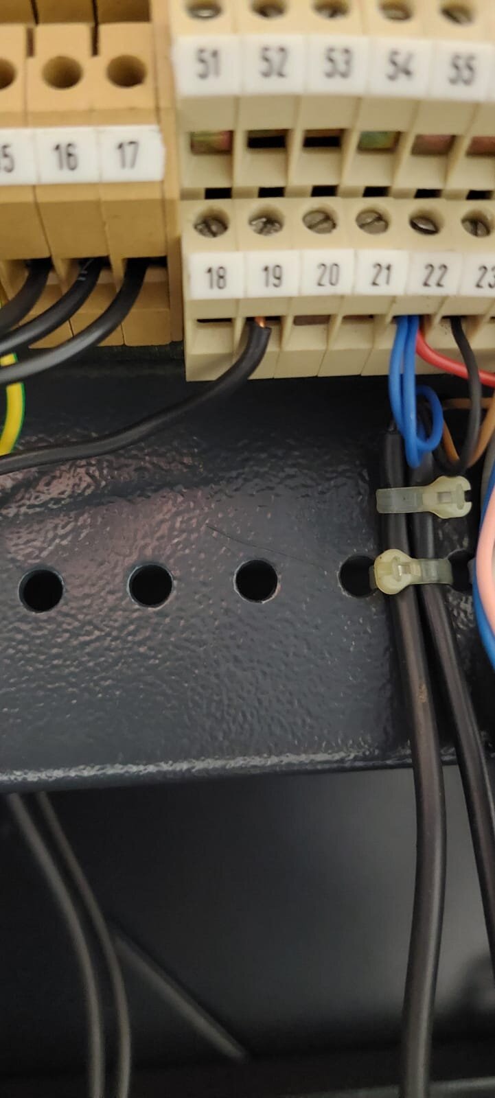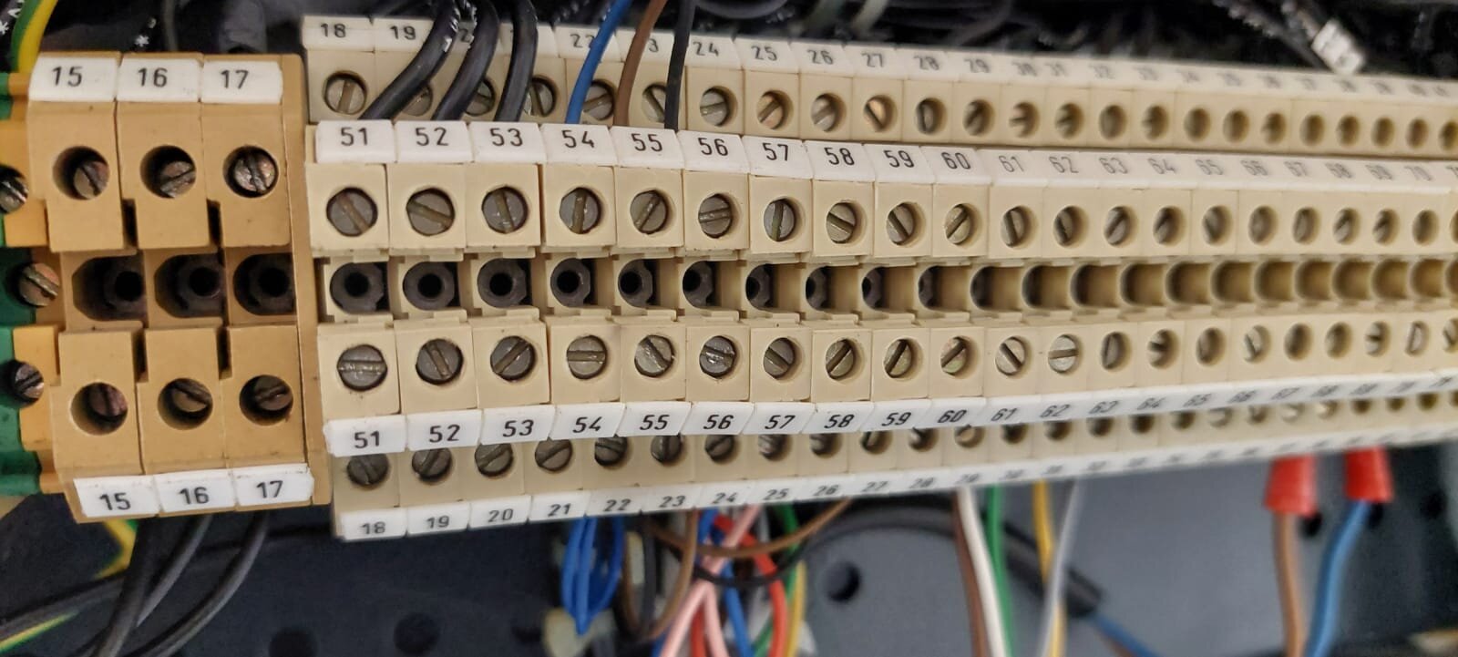 Bei meiner E15 ist die gesamte Hutschiene nicht vorhanden. Lediglich eine Klemme für die Spannungsversorgung,