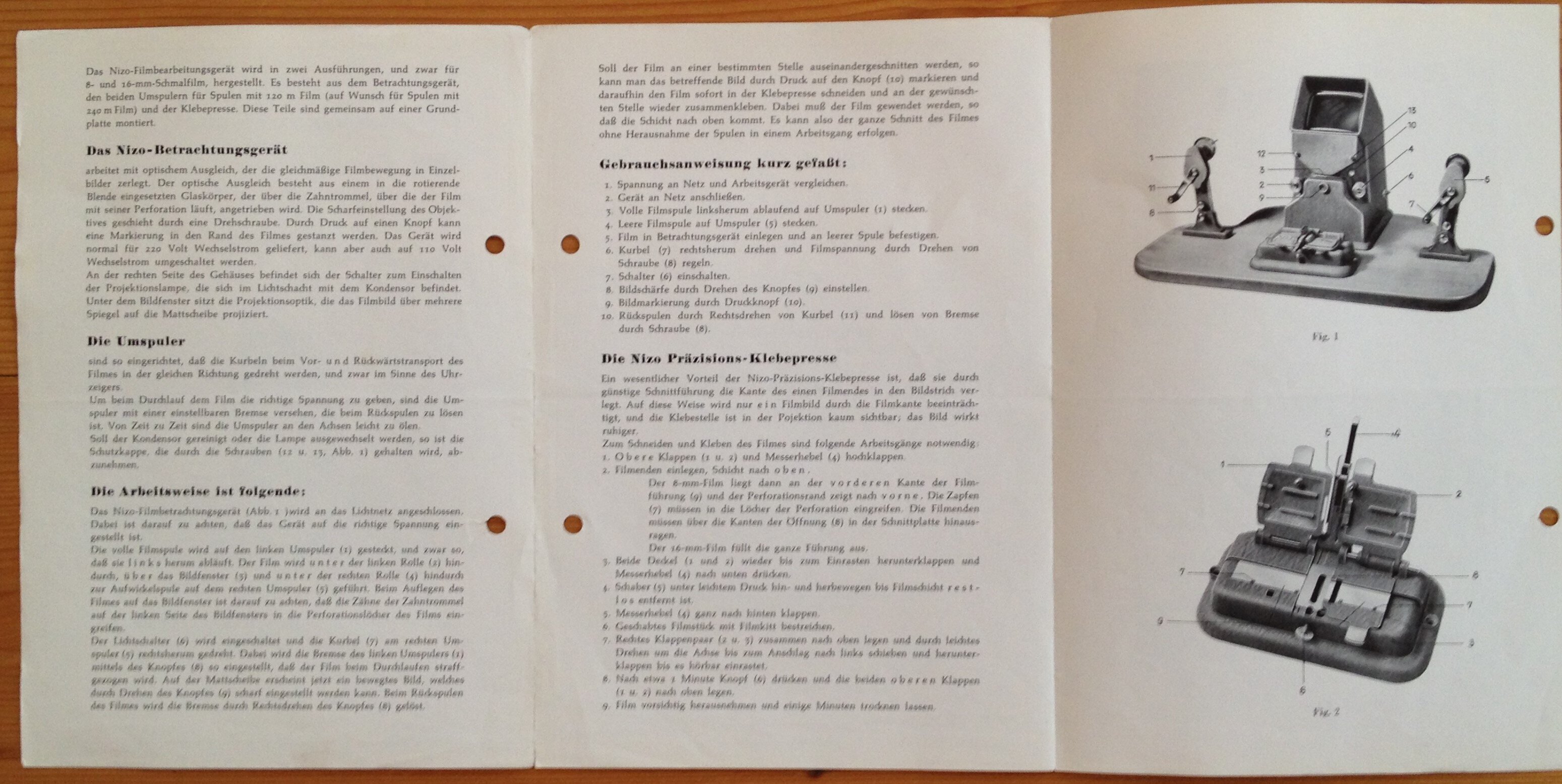 Immerhin ist bei Nizo der Filmbetrachter auf einer Art (transportablen) Tisch mit einer Schneid- und Klebevorrichtung vereinigt. Es gab diese Bauart auch von wenigen anderen Herstellern, wie Dein Zeiss, bei dem meines Wissens aber keine Klebepresse integriert ist.