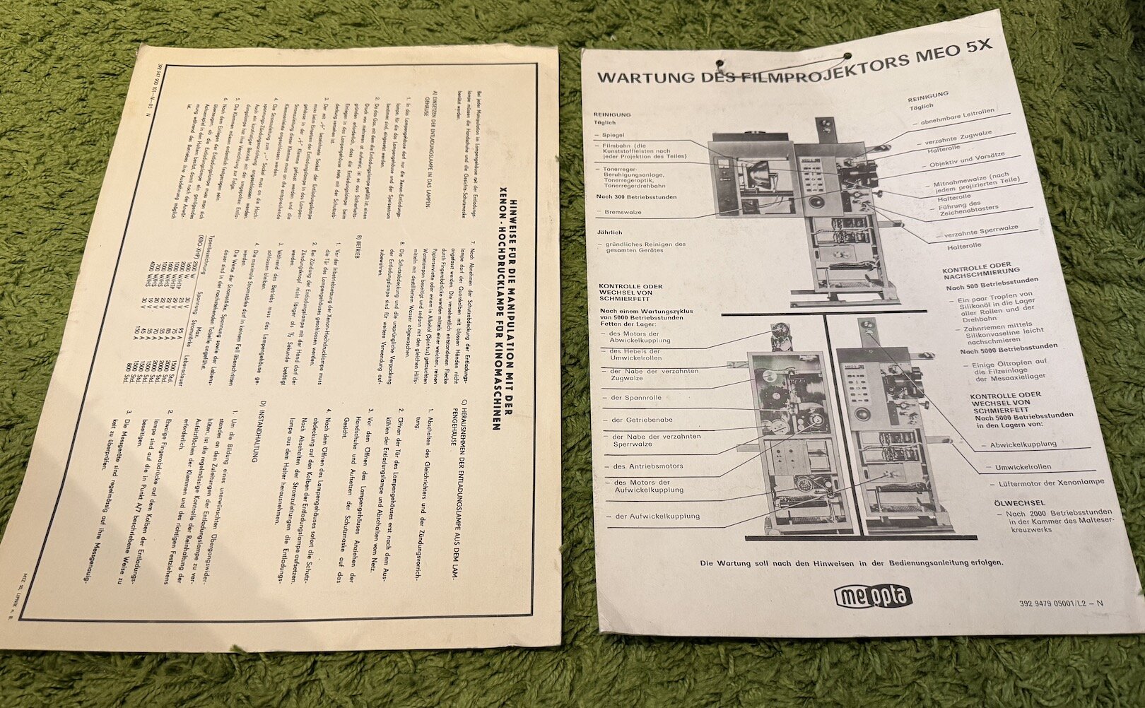 Biete Kartonschilder DIN A3 für die Wartung des Meopta 5X an, sowie das Handling des Xenonkolbens.