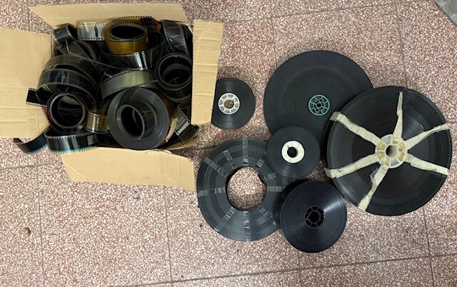 Biete einen Schwung voll mit unterschiedlichen Start-/Endbändern und zusammengeklebten Trailern, die als Platzhalter für die davor geklebte Werbung beim Filmteller dienten.