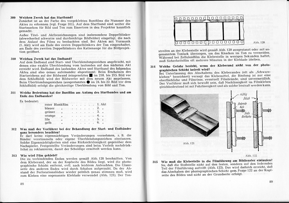 Das Buch aus dem ich 1968 im Elysee in Aachen gelernt hatte war: "Das Hilfsbuch für den Filmvorführer". Kennt das noch jemand. Meines ist futsch.